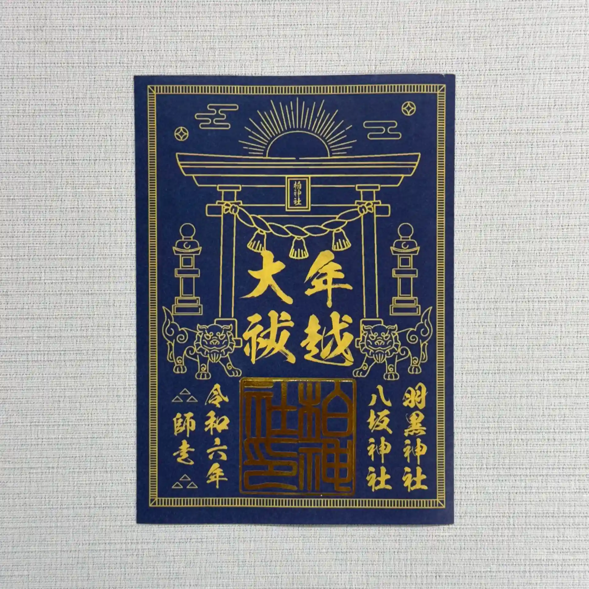 12月22日午後三時より柏神社境内にて斎行される年越大祓の御朱印。金の箔押印が施されています。