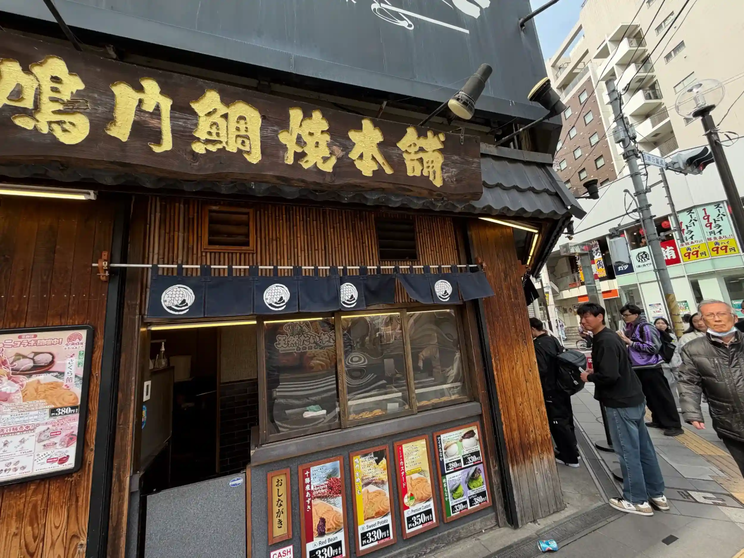 神社の向かい側に たい焼き屋さんありました