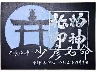 医薬の神少彦名命。鳥居の天辺の少彦名命の絵
