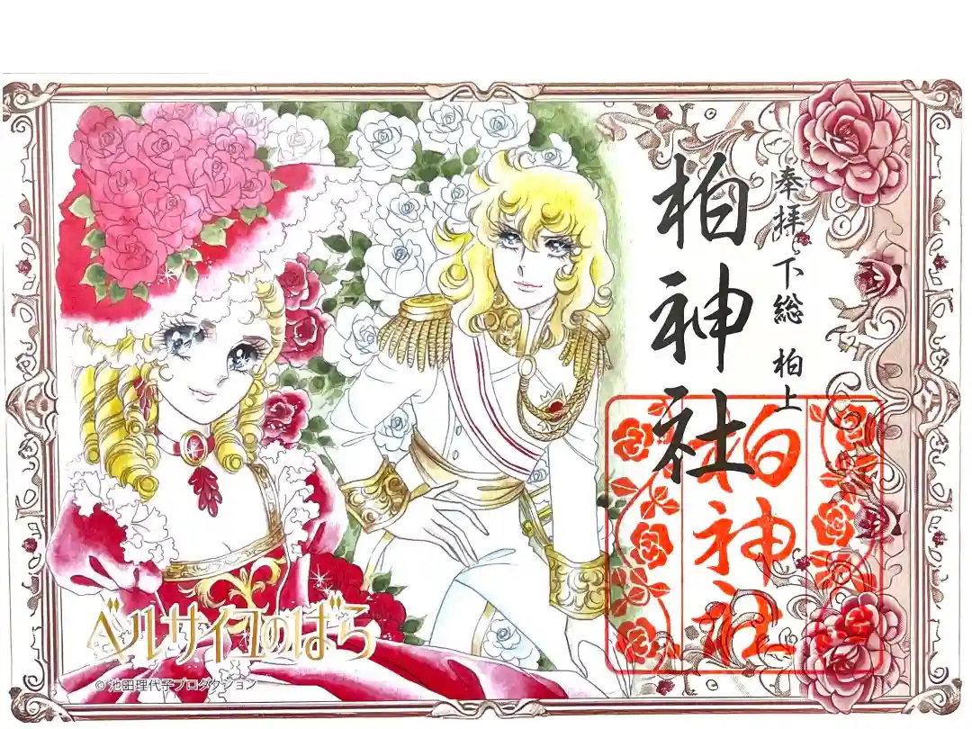 今なお世界中で愛される「ベルサイユのバラ」は、作者の池田理代子氏が約20年暮らした柏の地で描かれました。そのご縁から実現したコラボレーション御朱印となります。