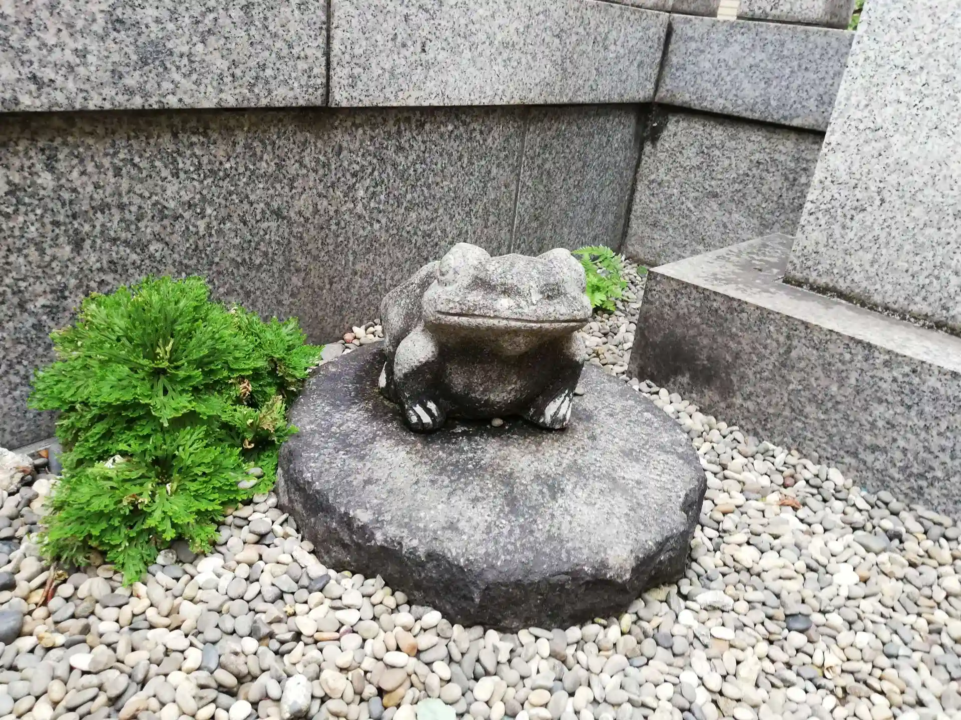 カエルの石像がかわいらしいです。