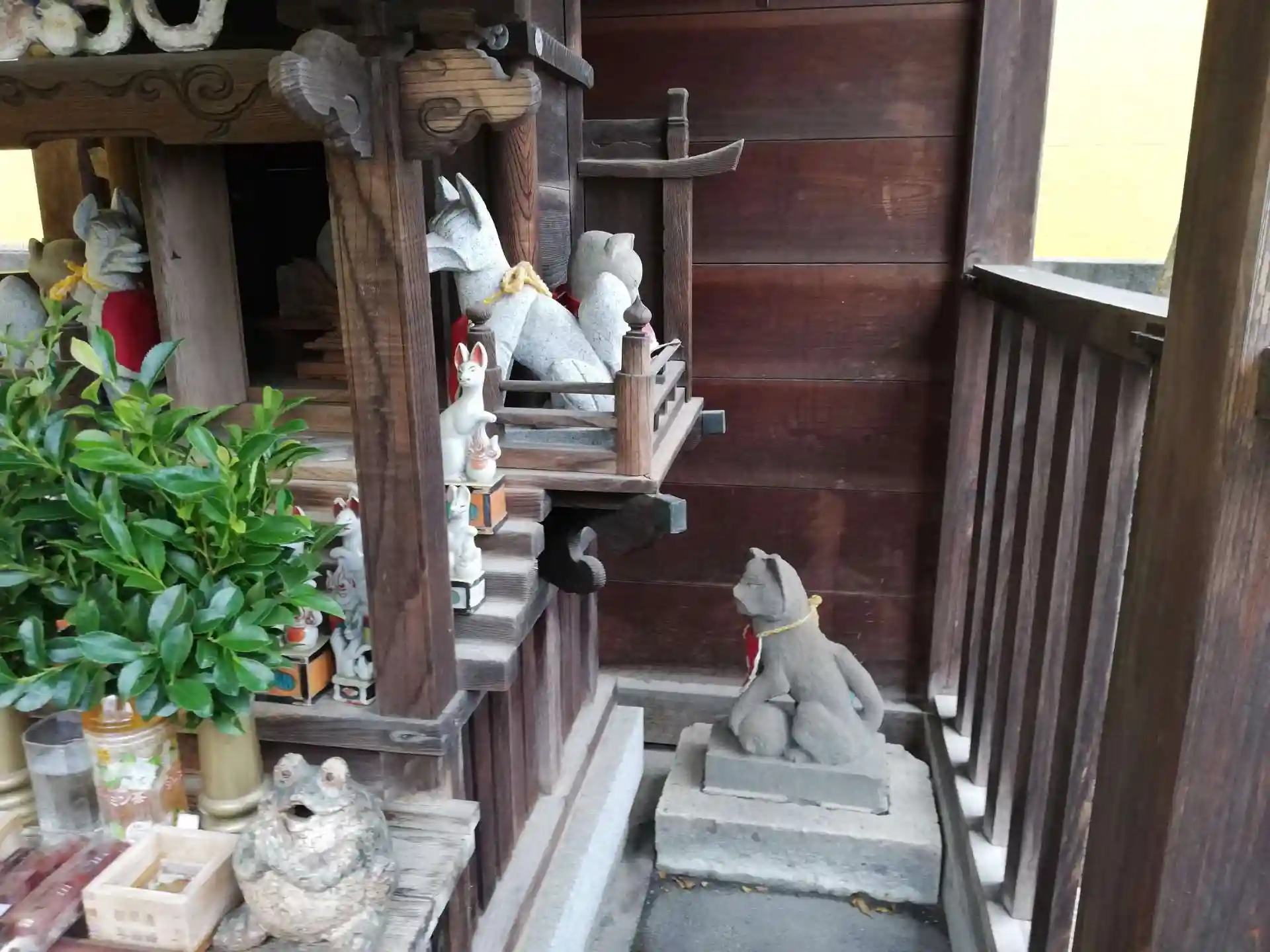 祠の中にお社があり、お狐様やおカエル様がたくさんいらっしゃいます。