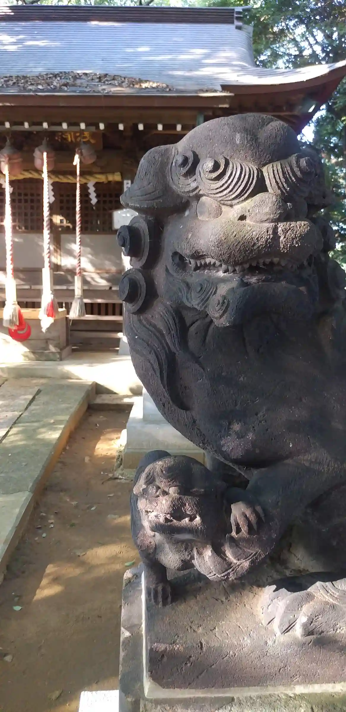 階段を上ってる途中に狛犬が二体いました