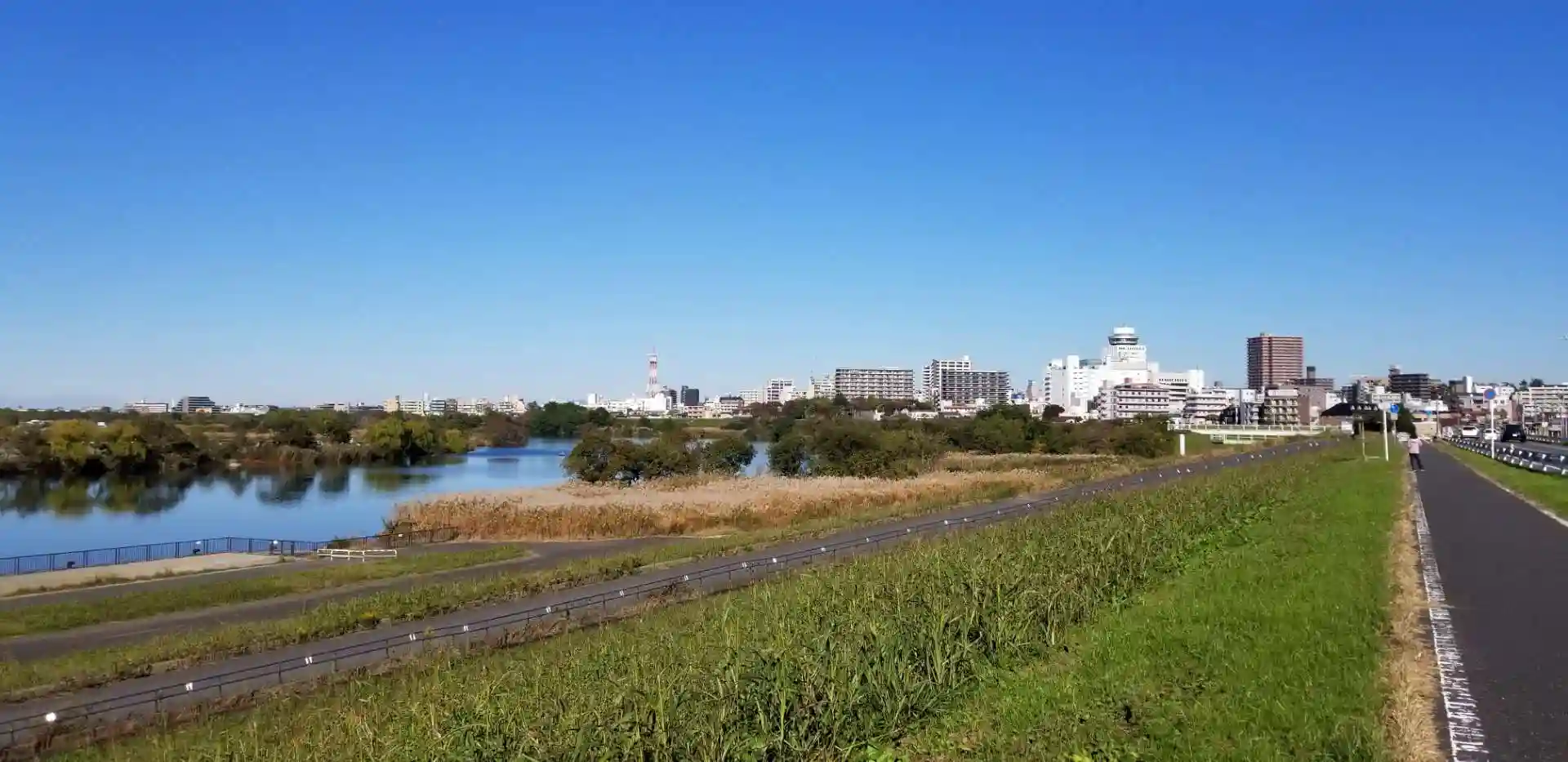江戸川の土手に登って