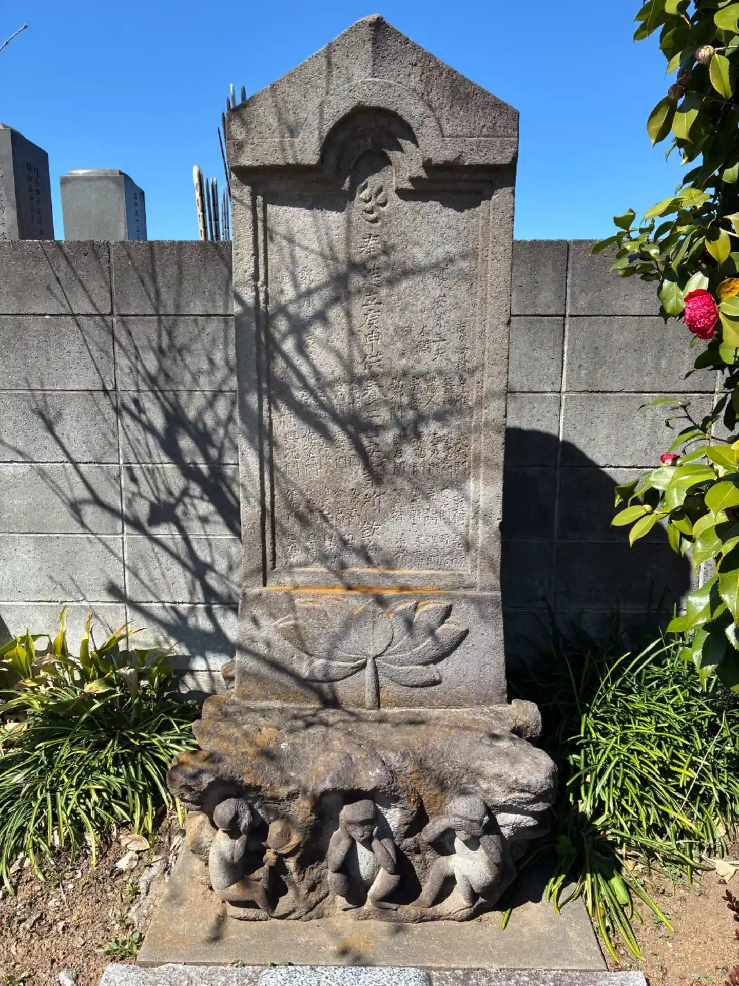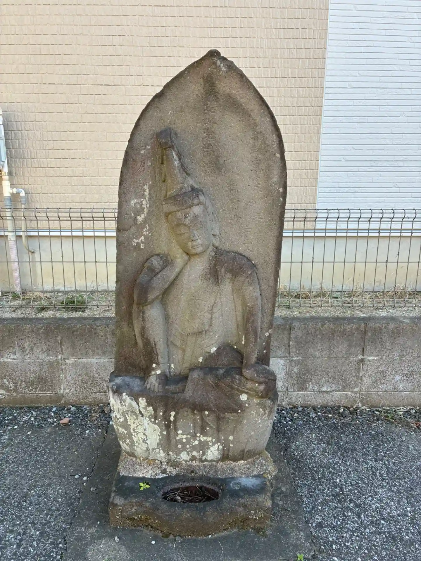 古ヶ崎村の菩提寺。庚申塔と如意輪観音が入り口で向かい合っています。