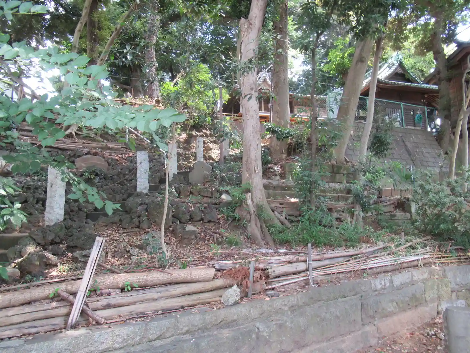 鳥居をくぐった先にあるスペースから見上げた先に拝殿がありますが、なかなか見ごたえのある風景です。