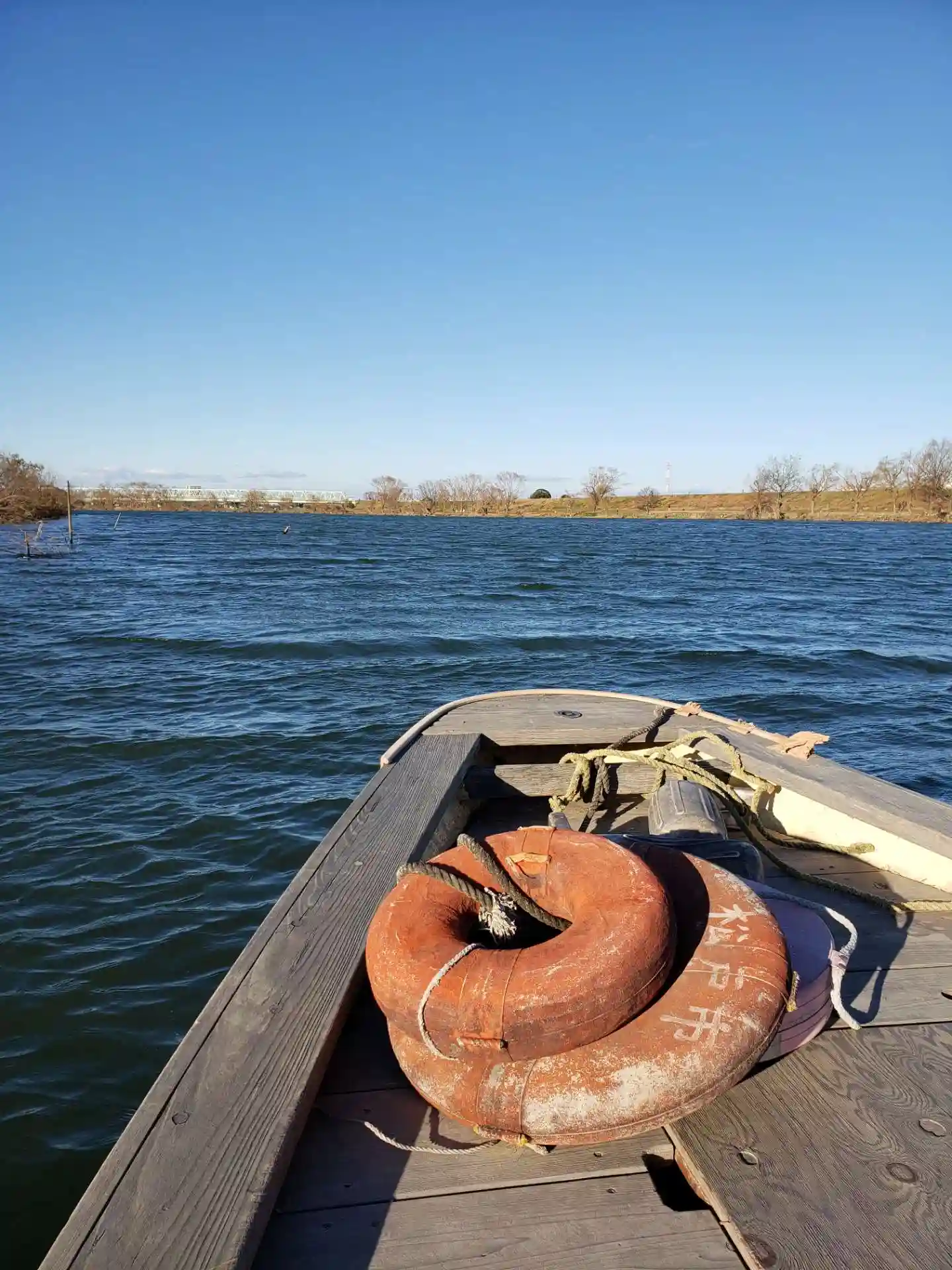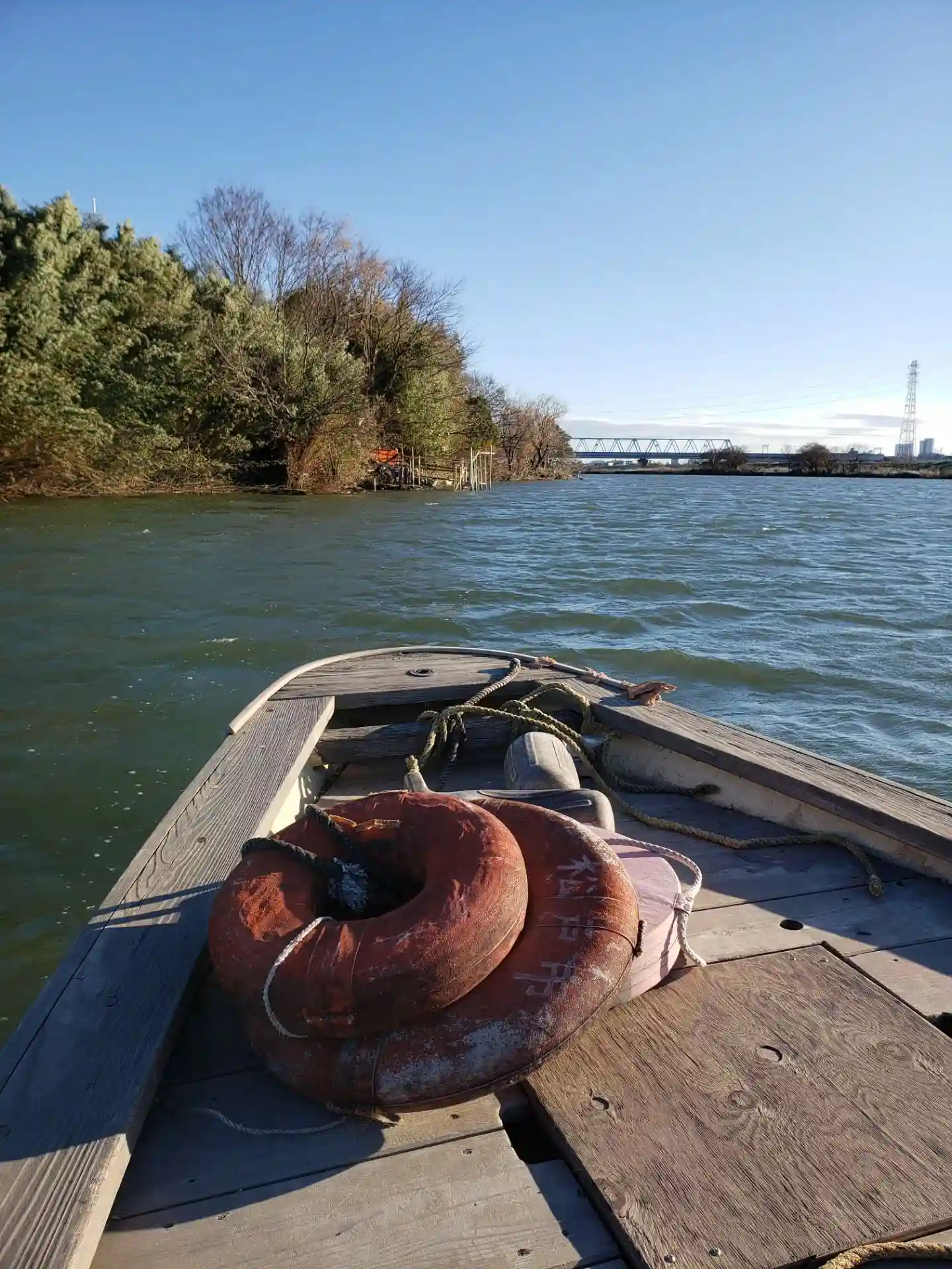 舳先に座らせてもらいました。