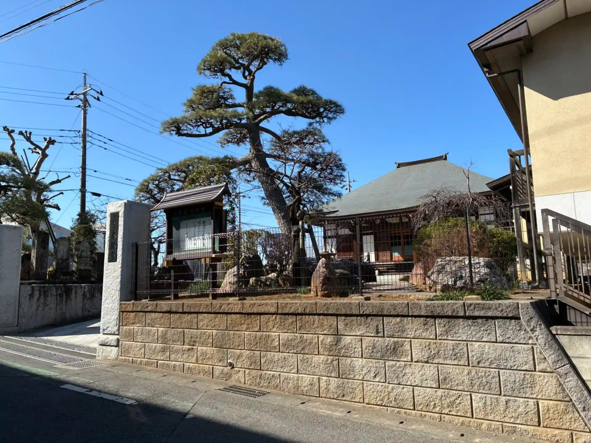 河原塚村の菩提寺。古民家のようなお堂を併設しています。