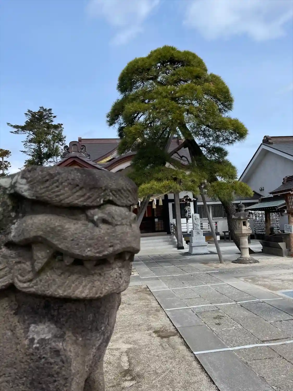 参道に並ぶ灯籠。狛犬も笑顔😊