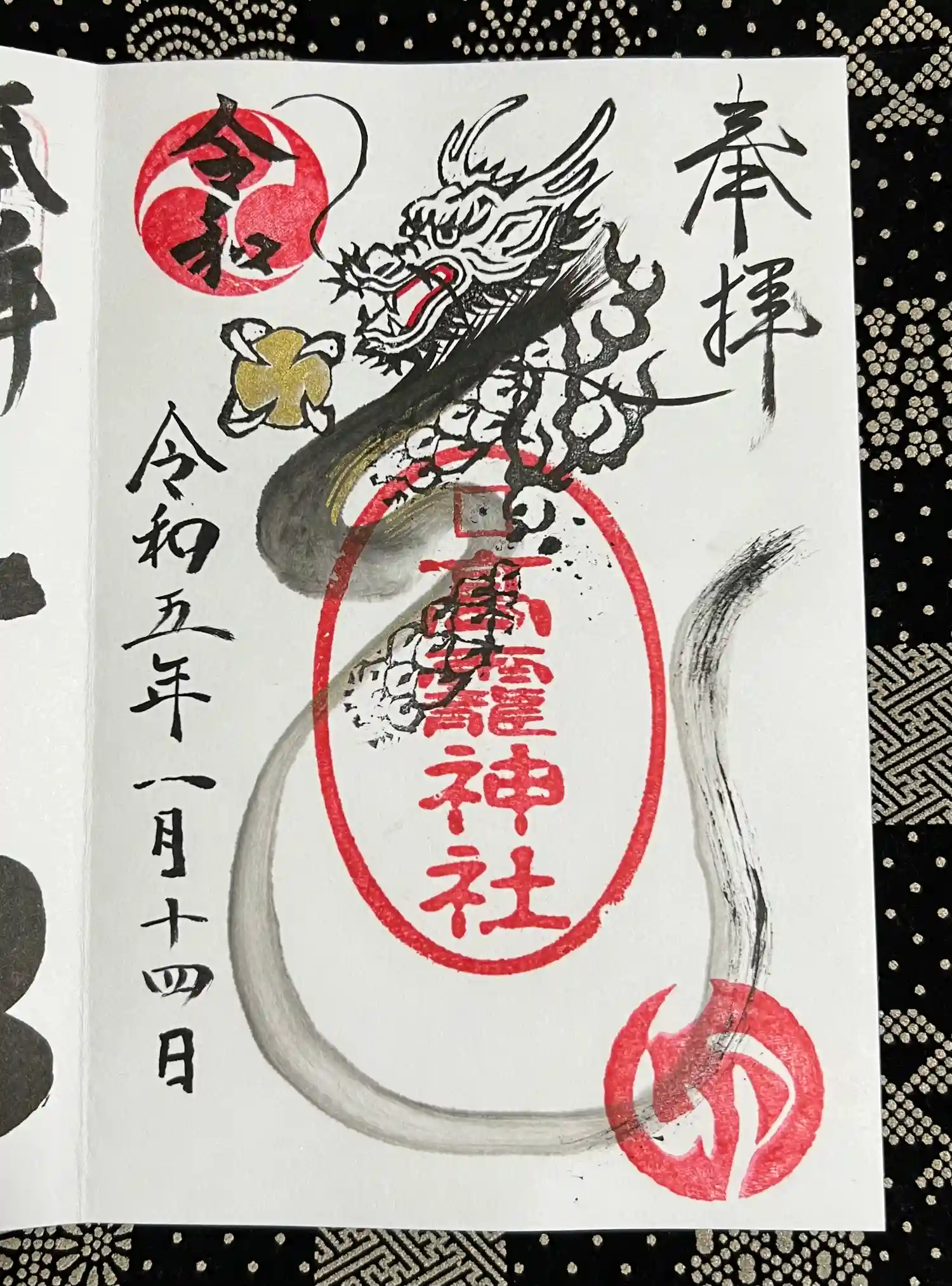 ちょうど御朱印帳がいっぱいになったので、こちらで新たに受けました。水の神様ですので龍神です。