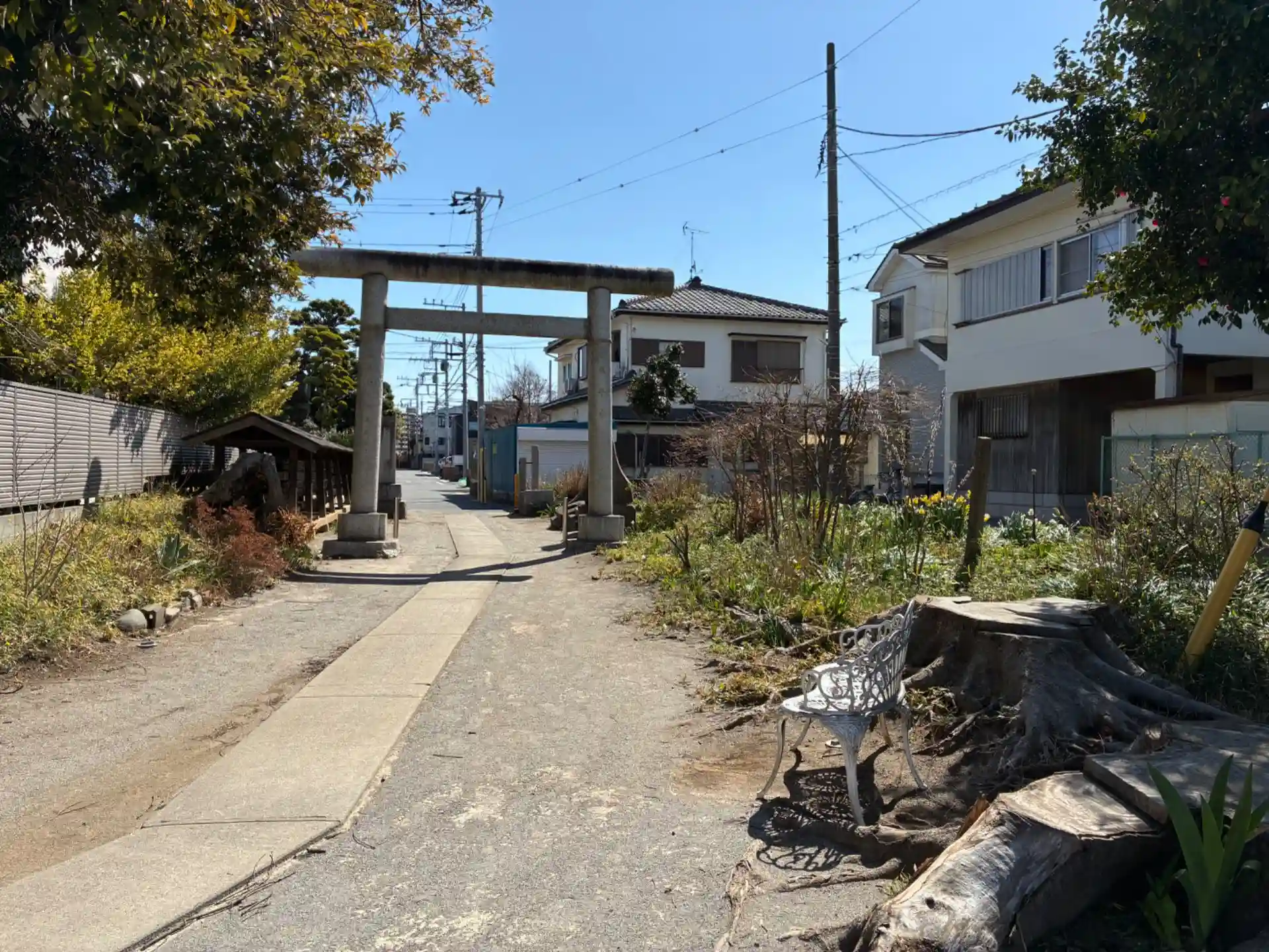 かつてはあたり一面畑だったようです。境内のちょうどいい位置にベンチがありました。