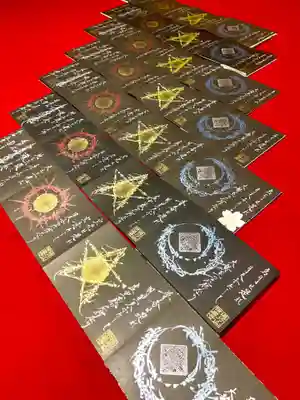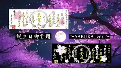 お誕生日御首題ver3 金銀の文字に桜の花びら型の紙が貼ってあります。名前と誕生日が書いてあります。