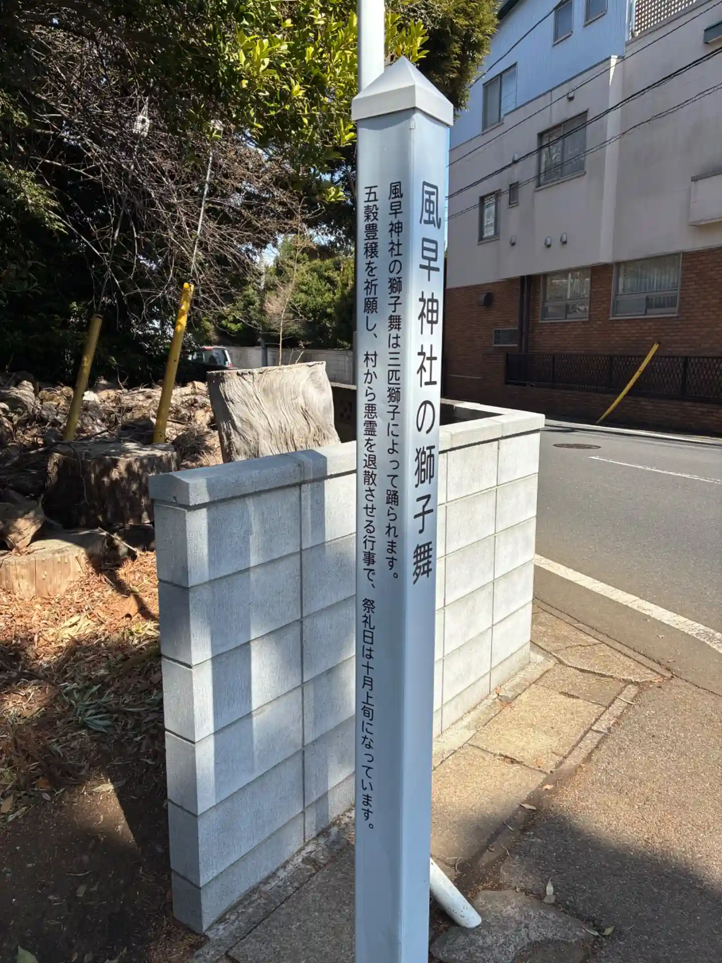 千葉常胤の孫、風早四郎胤康の居館跡と伝わる場所に建つ神社。松戸市北部119村の総代社で広く信仰を集めていたようです。隣接する道路が狭いため、歩道としても親しまれているようでした。参道の木々が清々しいです。
