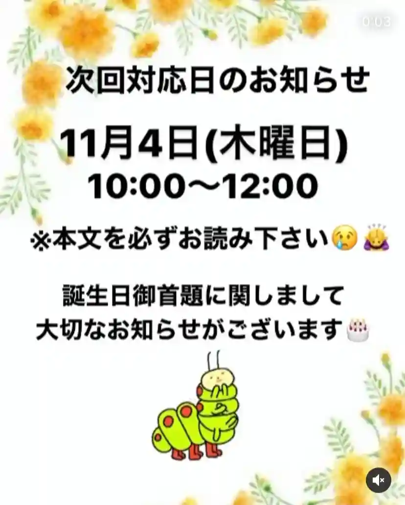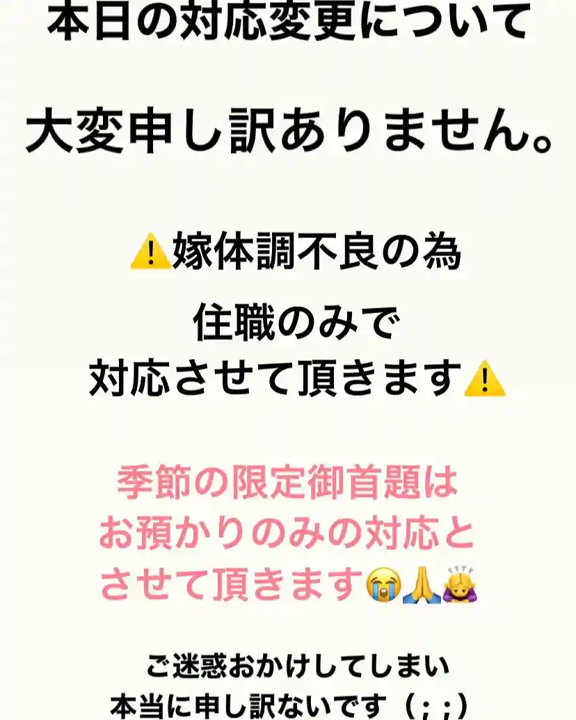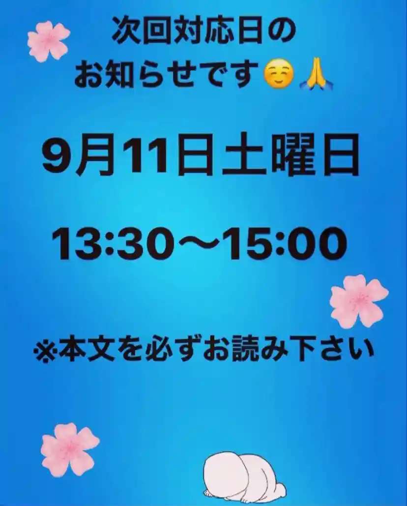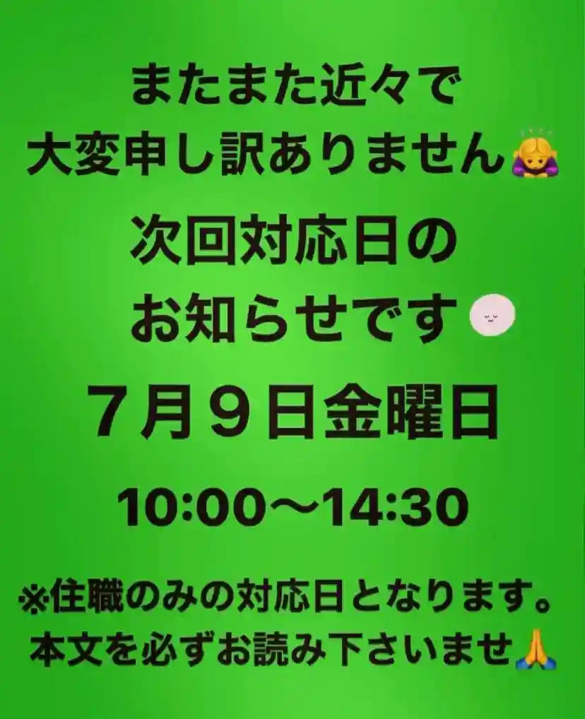 御首題の対応日時はインスタで確認してください。平日…