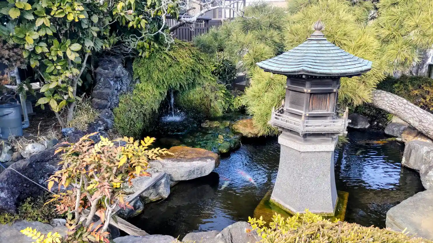本堂と境内の駐車場の間に池があります