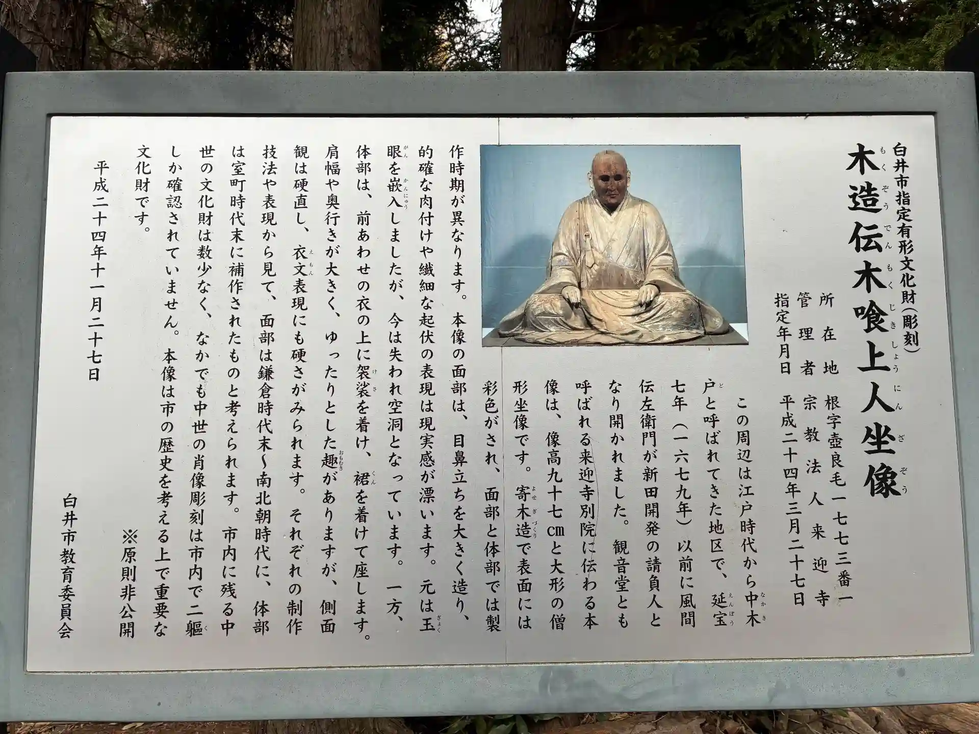 1679年に新田村開発の請負人として風間氏が入植する以前からあったと思われるお堂。鎌倉末頃のリアルな木喰上人の像が今に残っています。