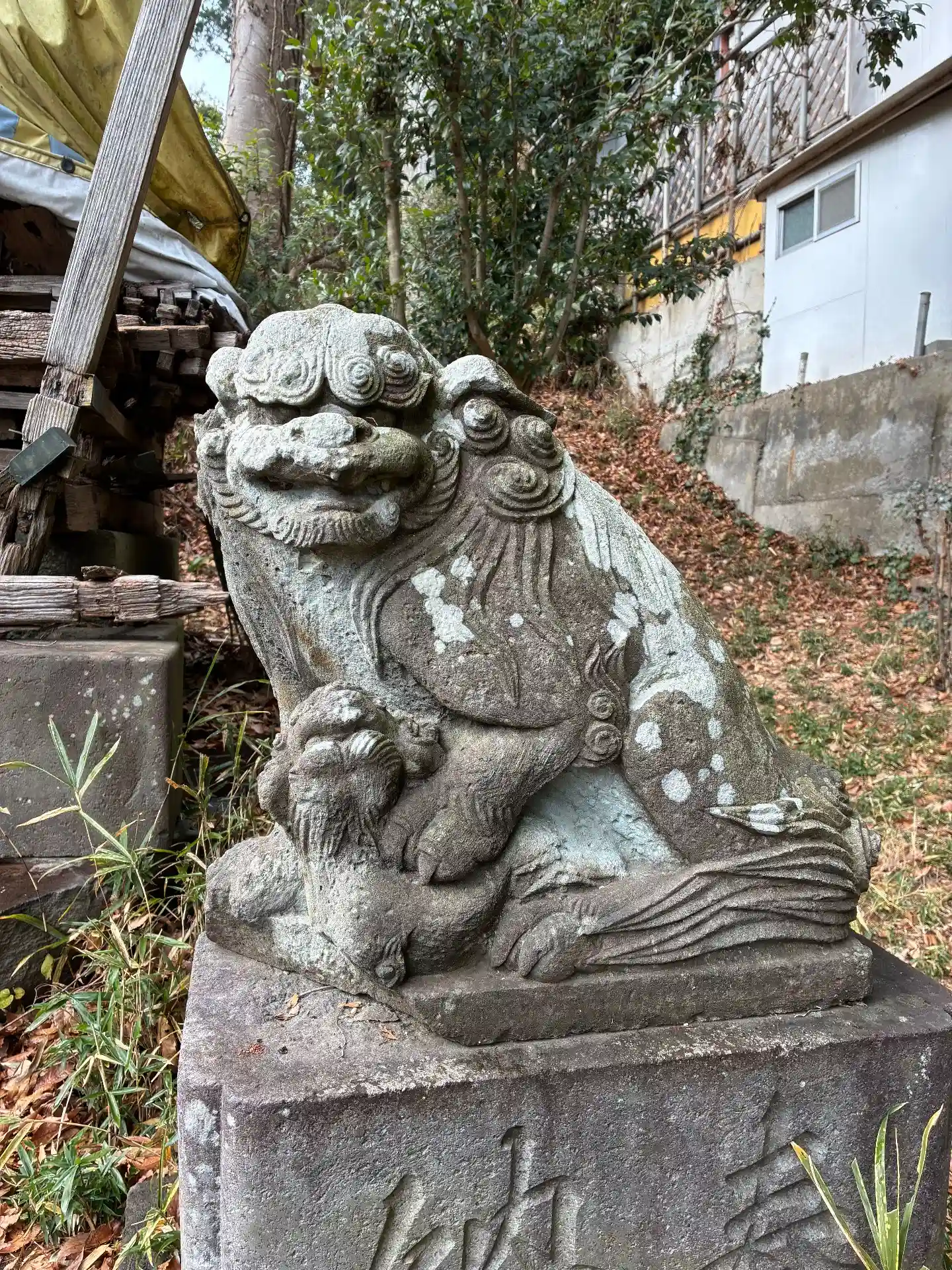 民家の裏にある祠。銚子から江戸に鮮魚を運ぶ道として知られる鮮魚街道のちょうど中間なことから休憩所として栄えたそう。おそらく令和元年台風で建物は大きく損壊し、いまだ修復の目処は立っていないようでした。