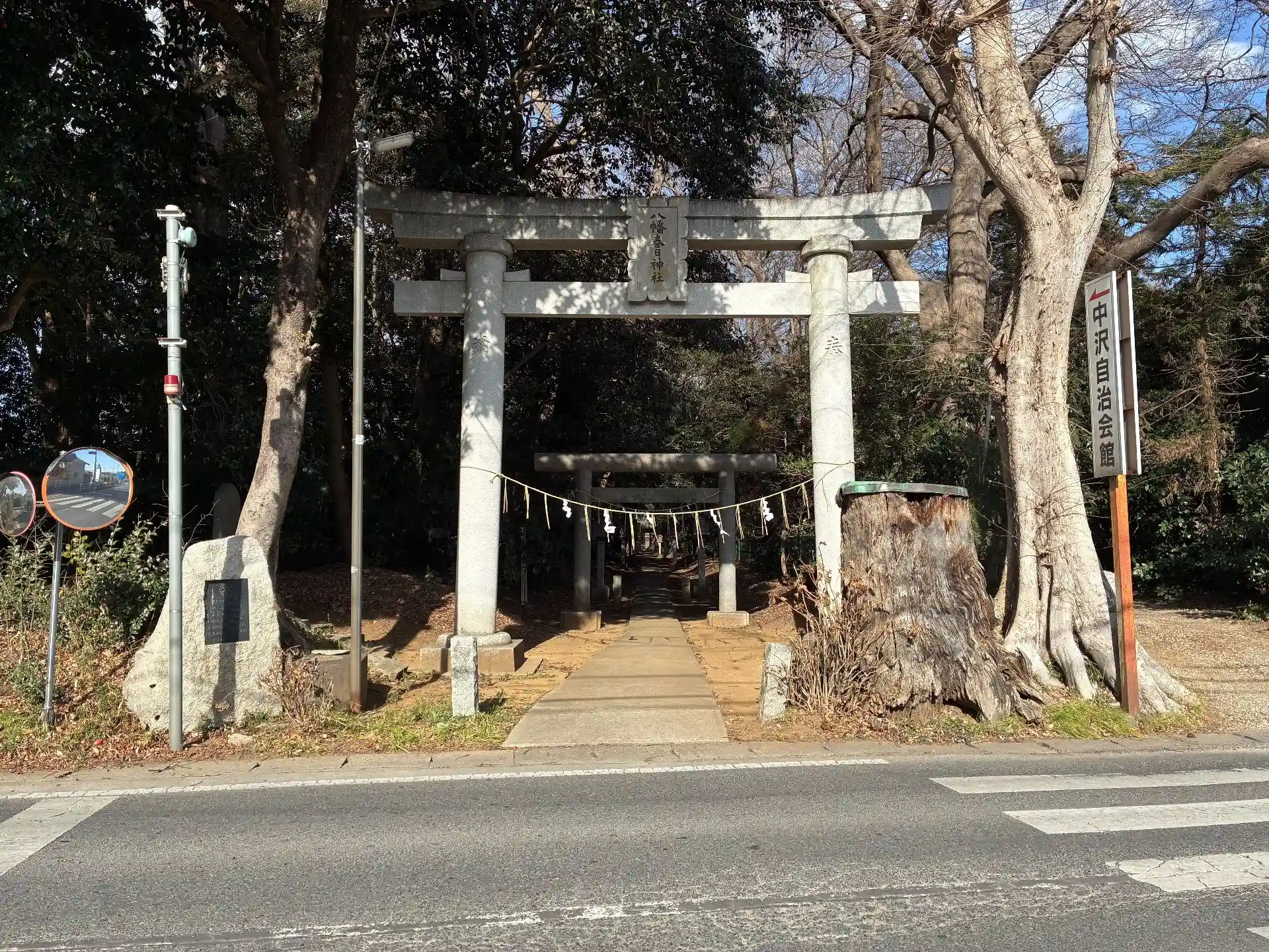中沢村の鎮守。長くまっすぐな参道が整備されています。
