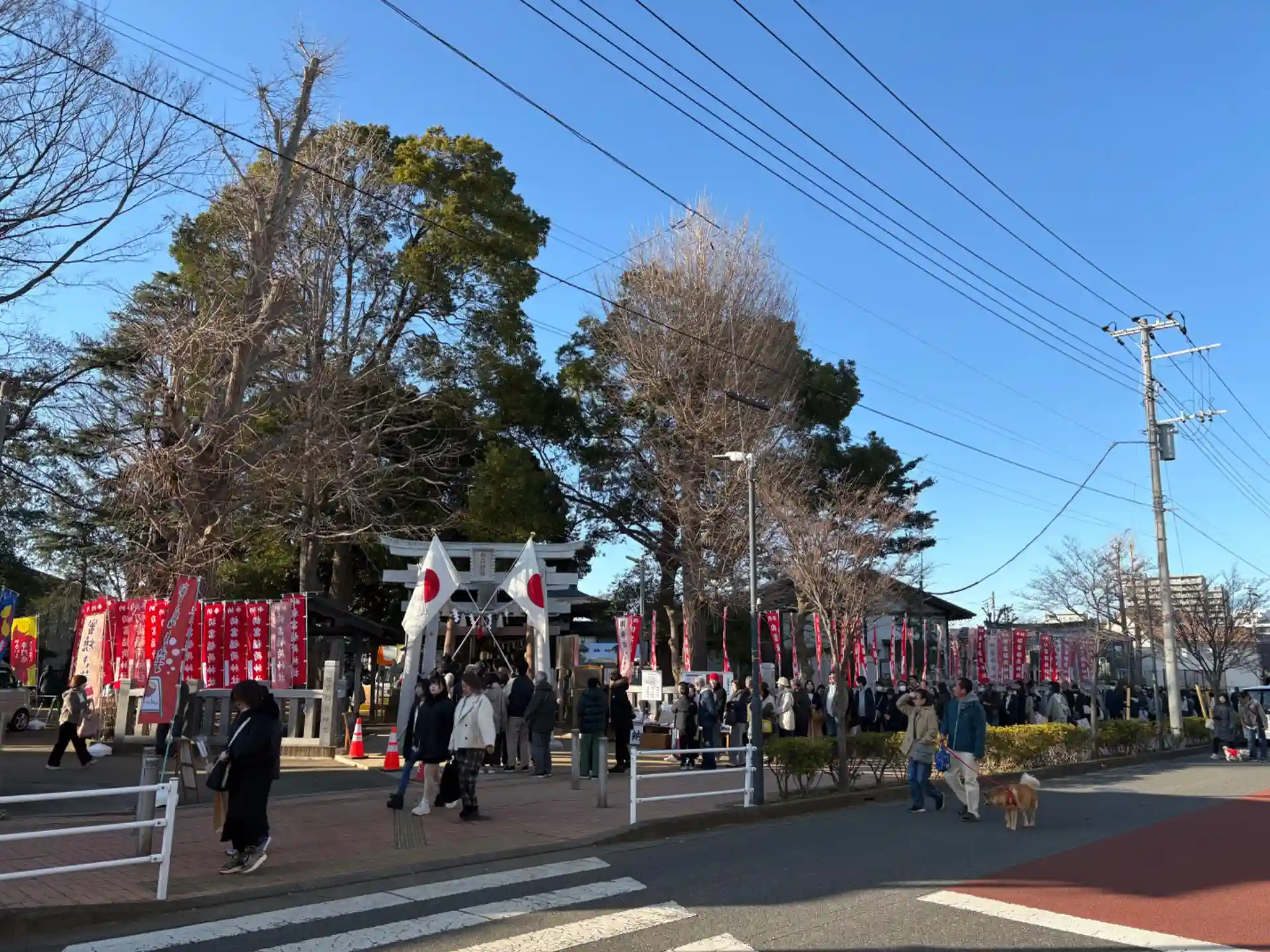 神社の前まできたら鳥居で折り返して歩道に沿って並んでました。