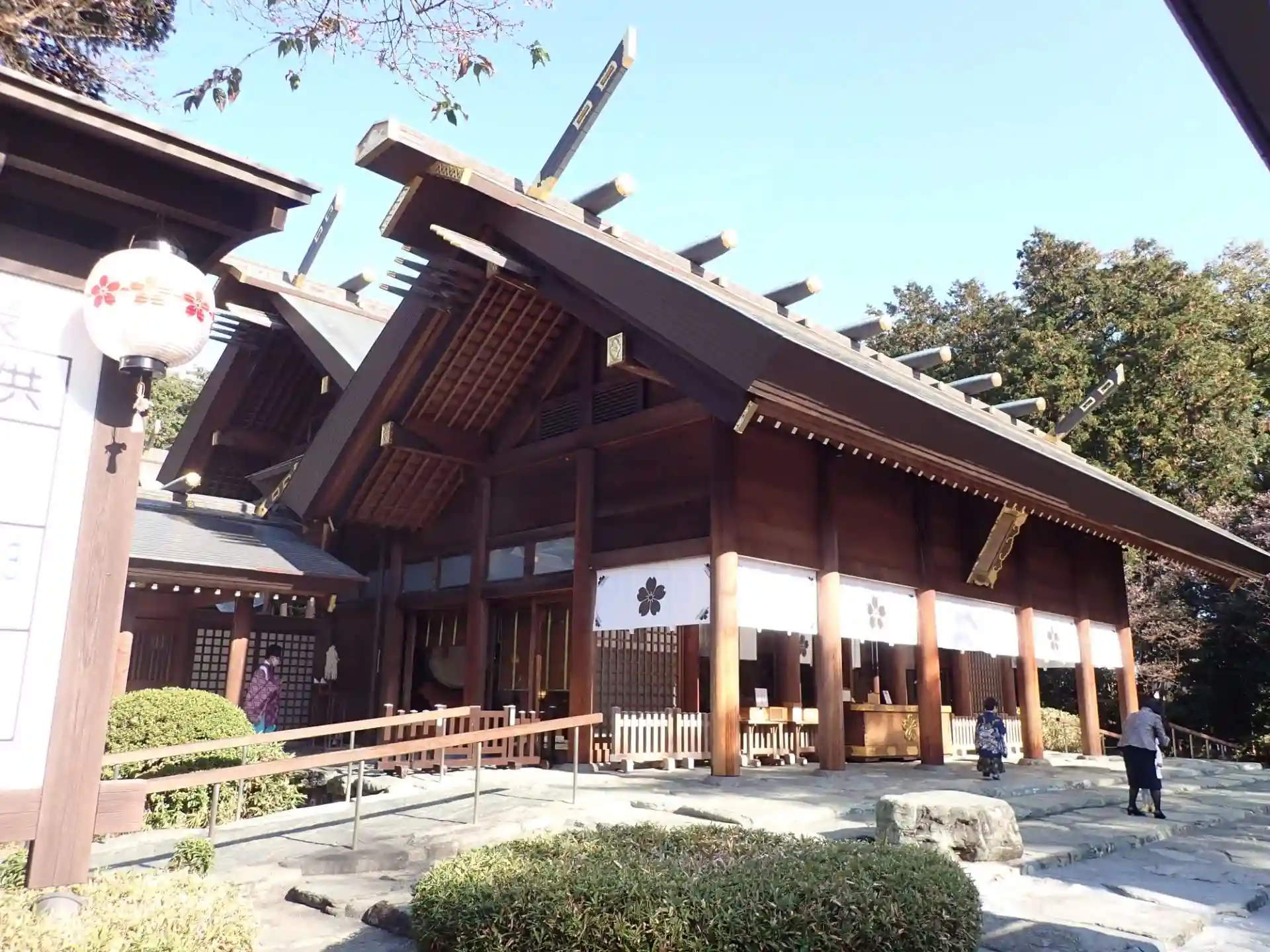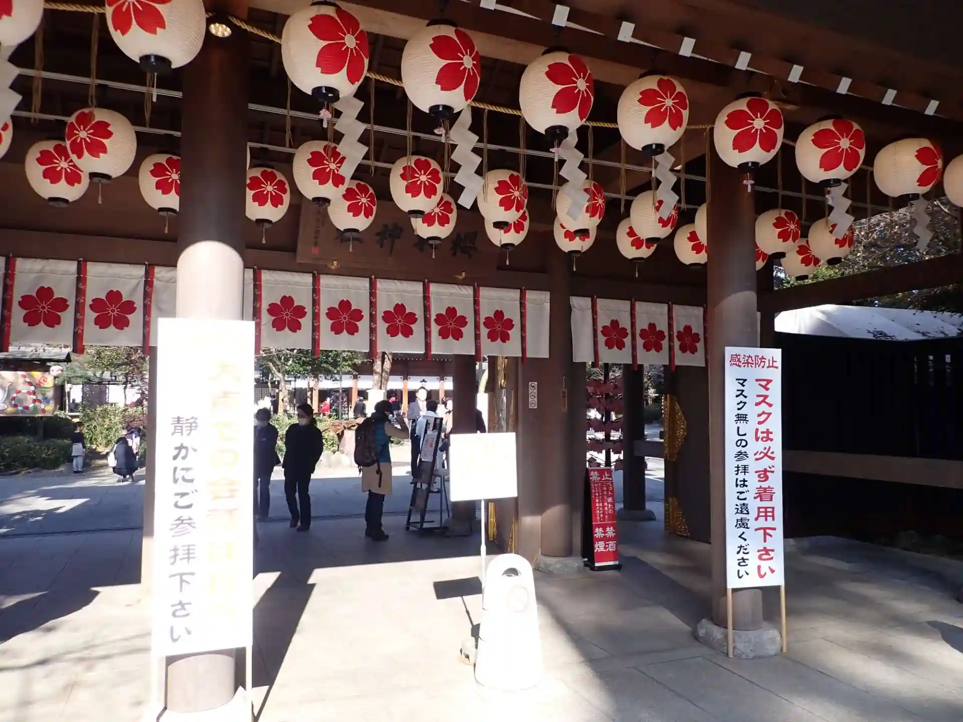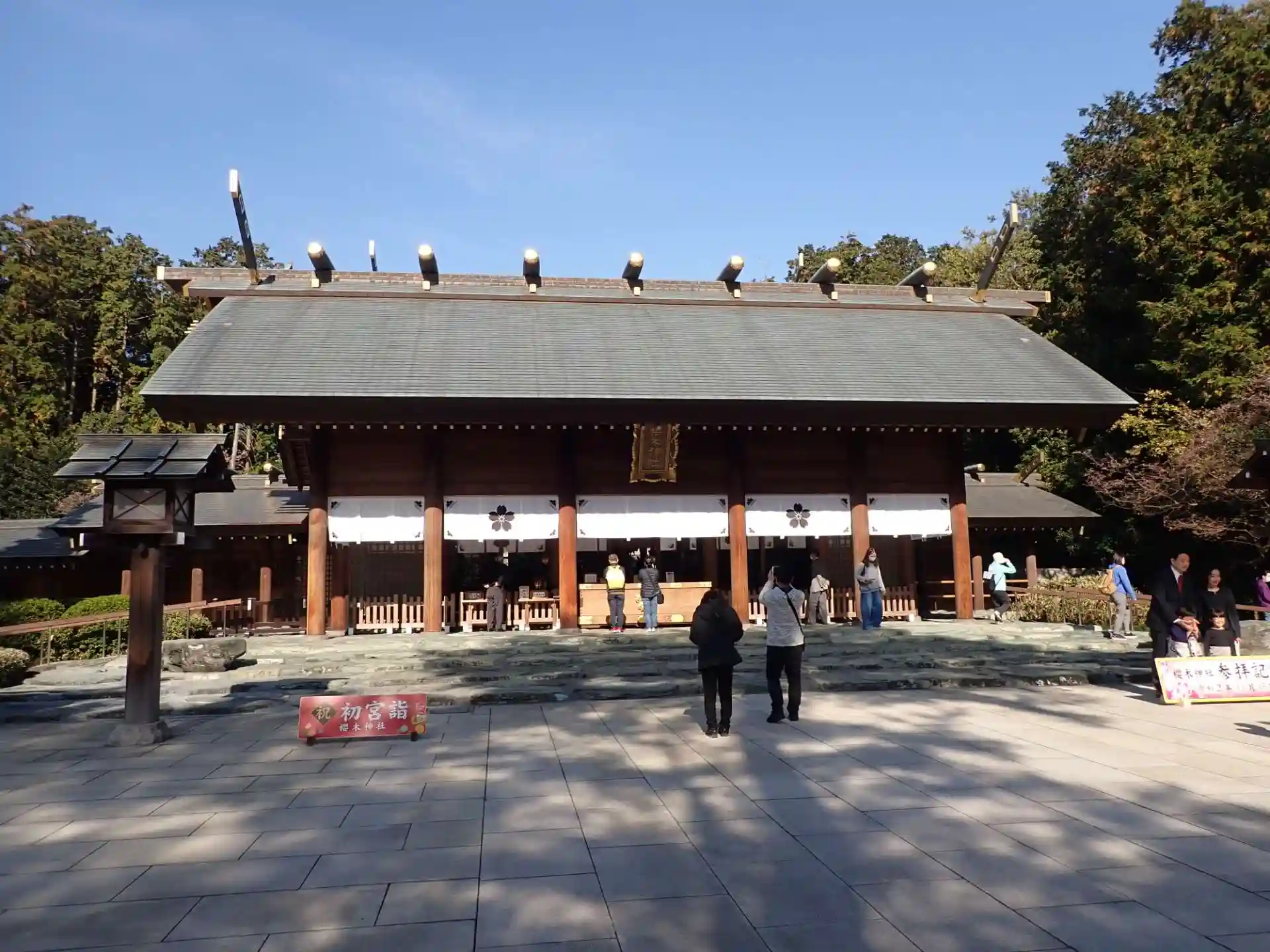 七五三と戌の日が重なり、また穏やかな晴れの天気でしたので、多くの子供連れの家族やカップルが参拝しており、十一月に咲くという珍しい七五三桜も咲いていて、幸せいっぱいの境内でした。