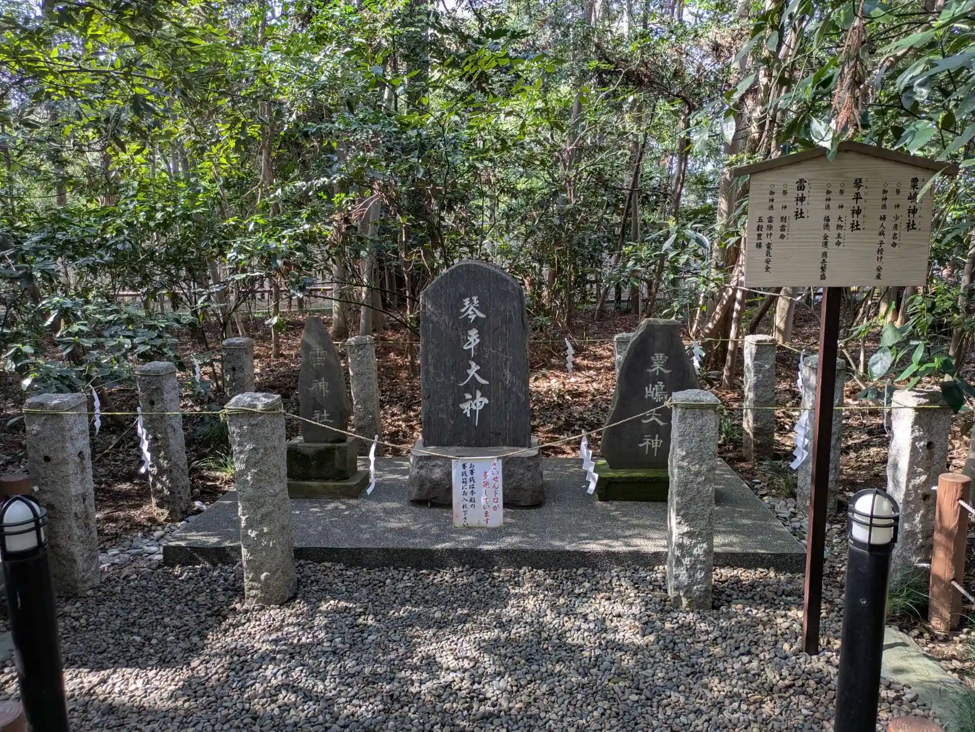 左から『雷神社』『琴平神社』『粟嶋神社』