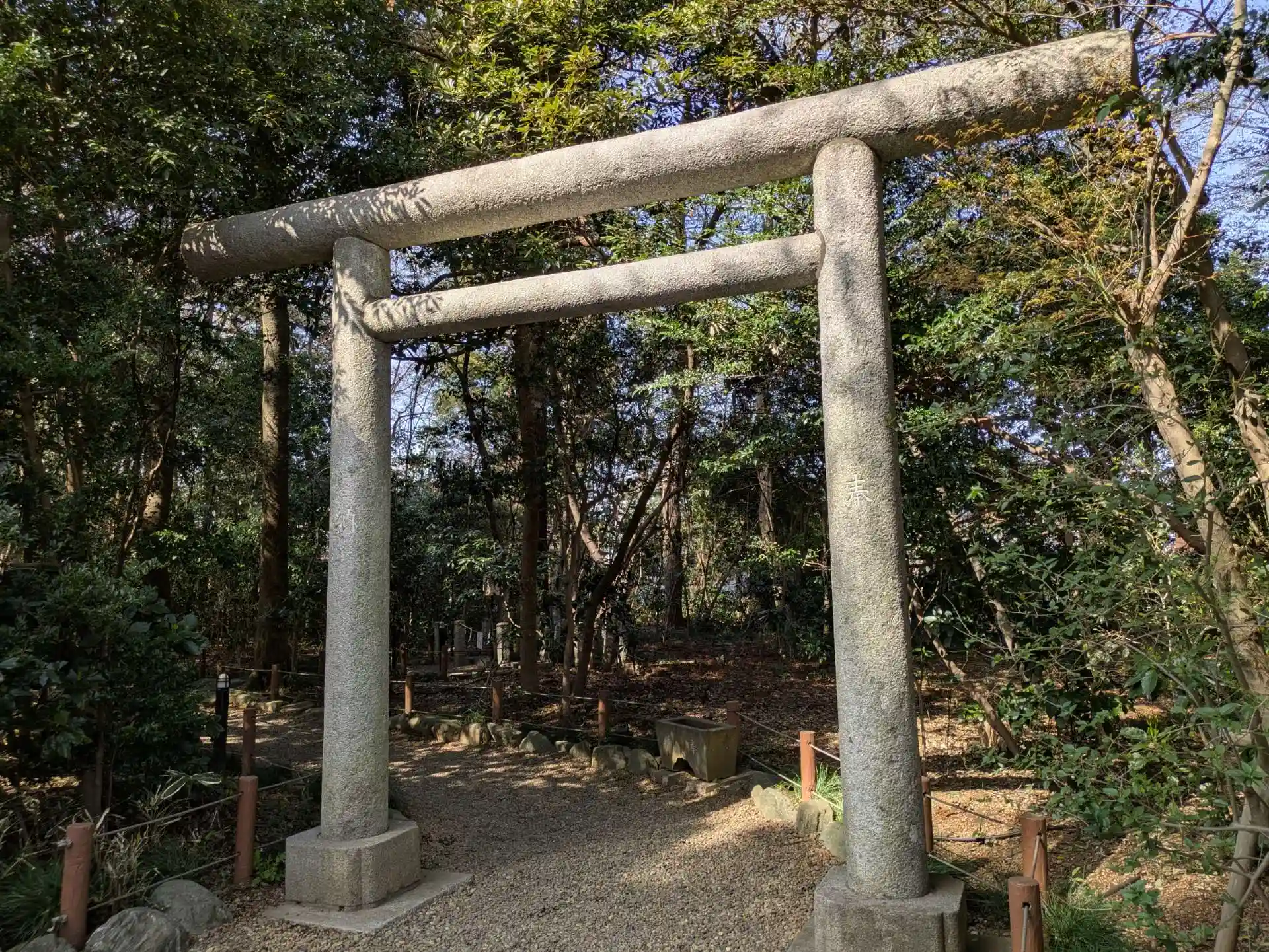参道の途中の摂末社入口の鳥居