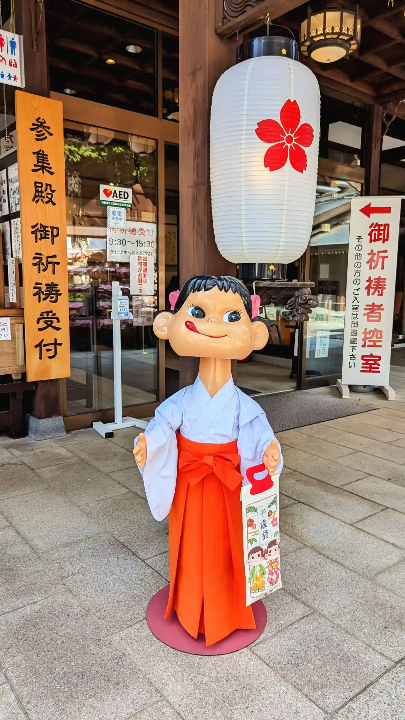 祈祷される方の控え室の入口にペコちゃん😆