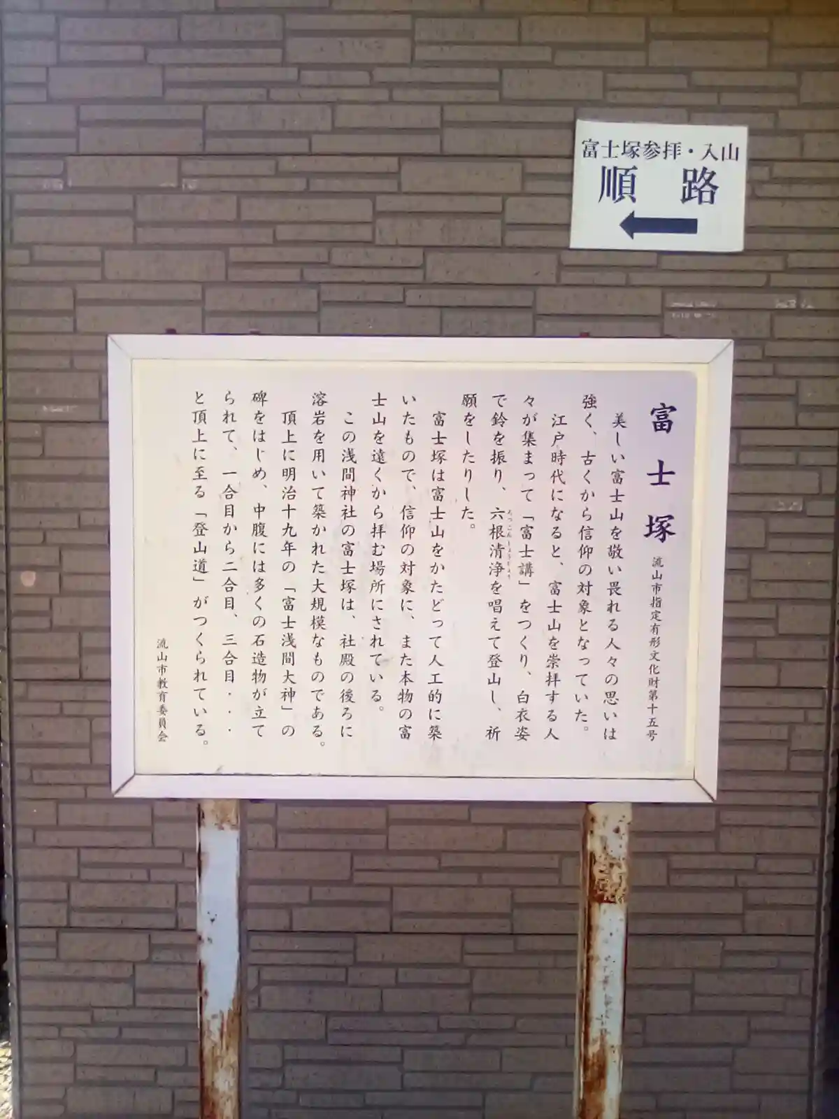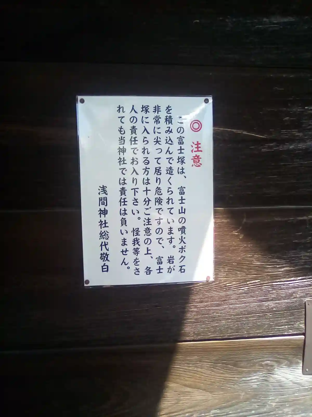 富士塚はこちらという張り紙とともにこのような注意書きが。