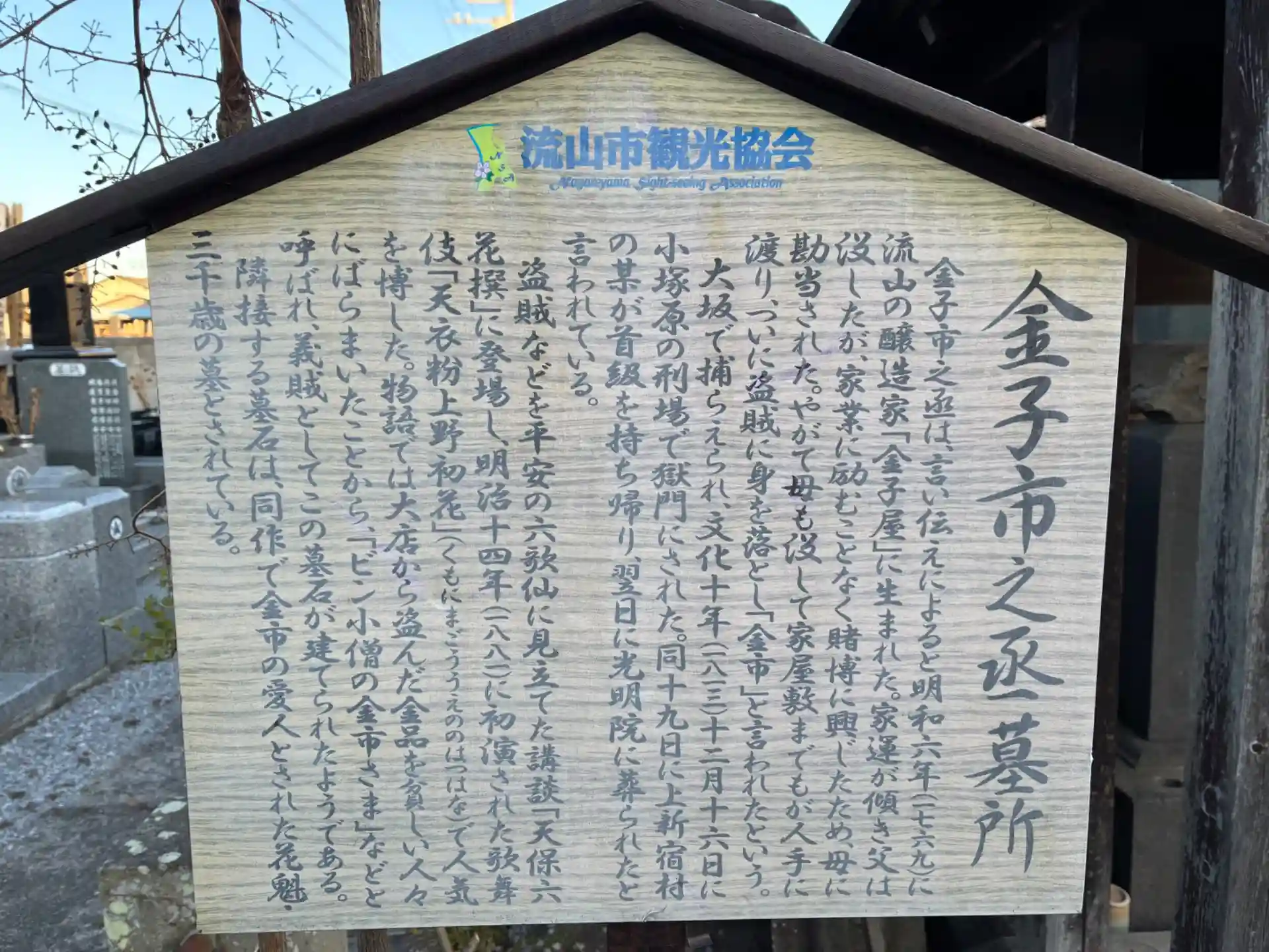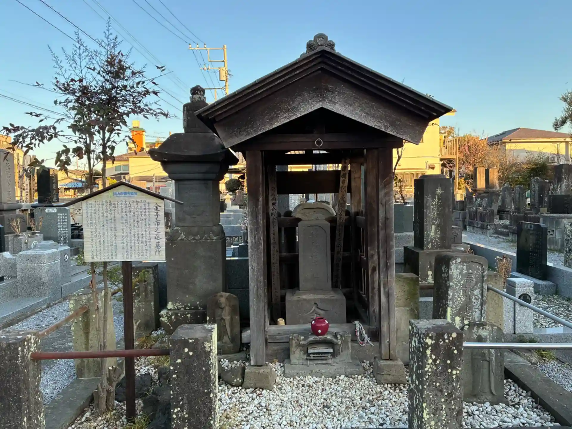 閻魔大王の木像を安置したお堂。境内には金子市之丞という盗賊の墓があります。
