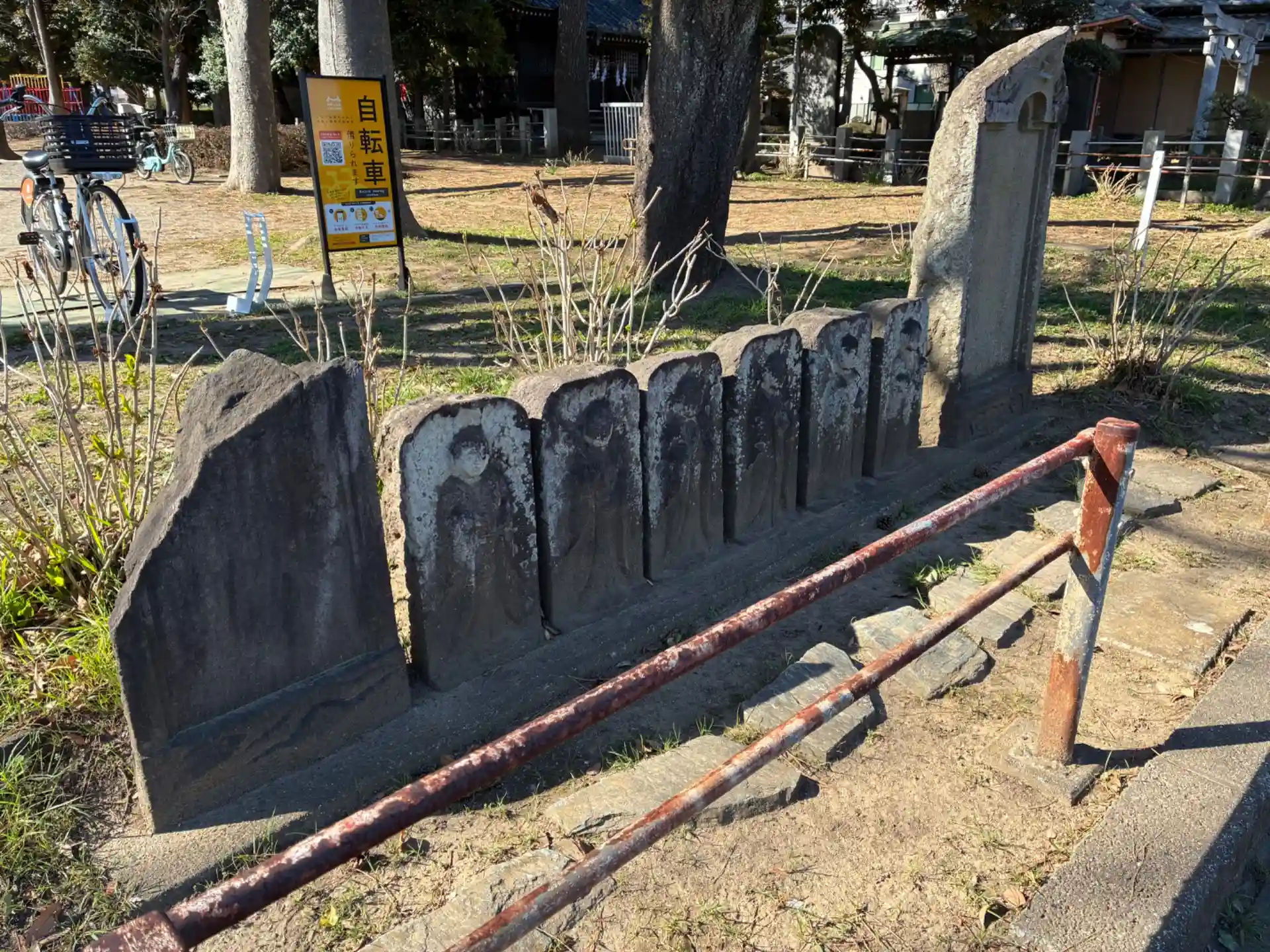 大谷口城主高城氏の家臣が開拓を主導した新田村に建てられた神社。公園が隣接しています。