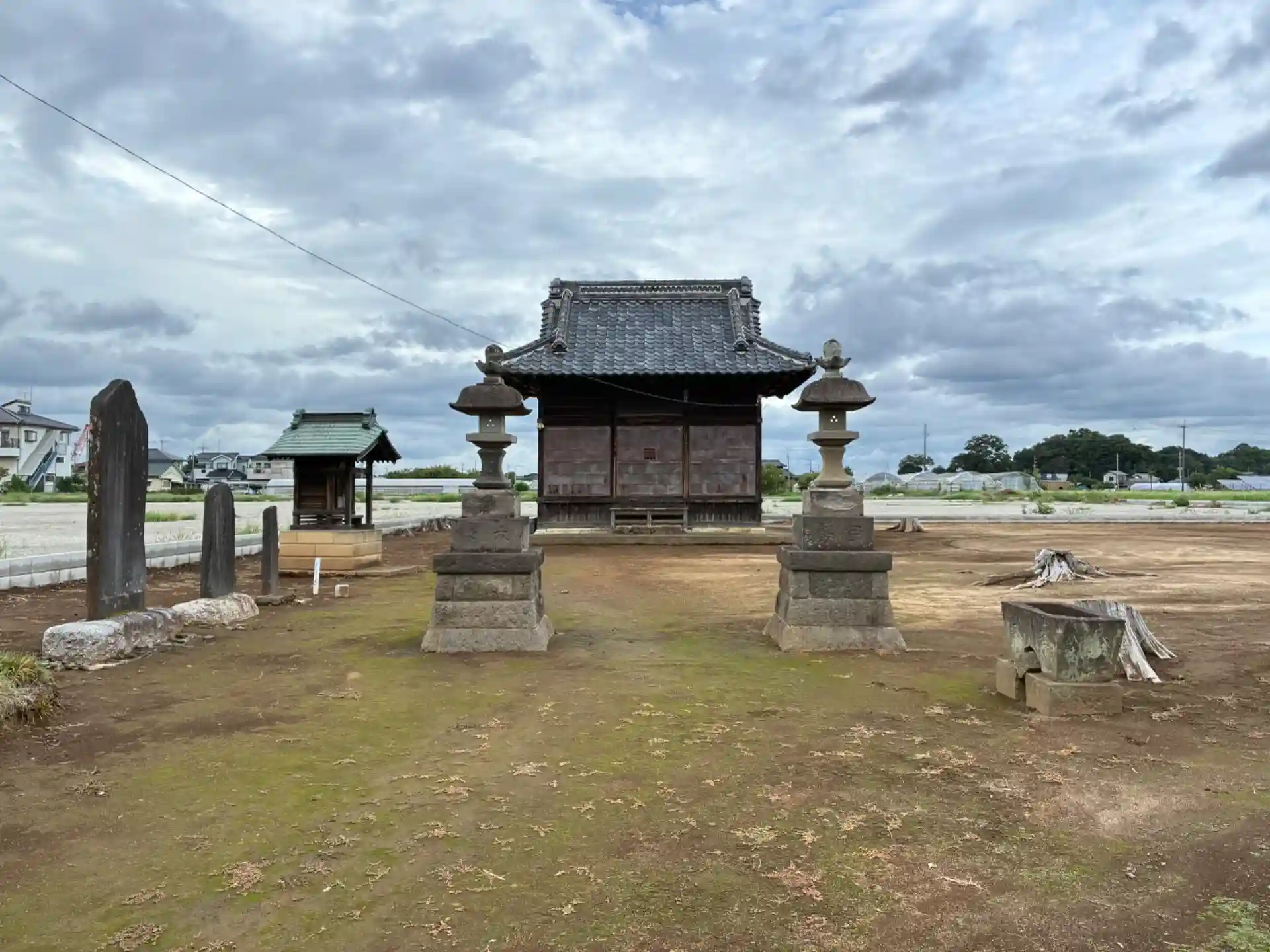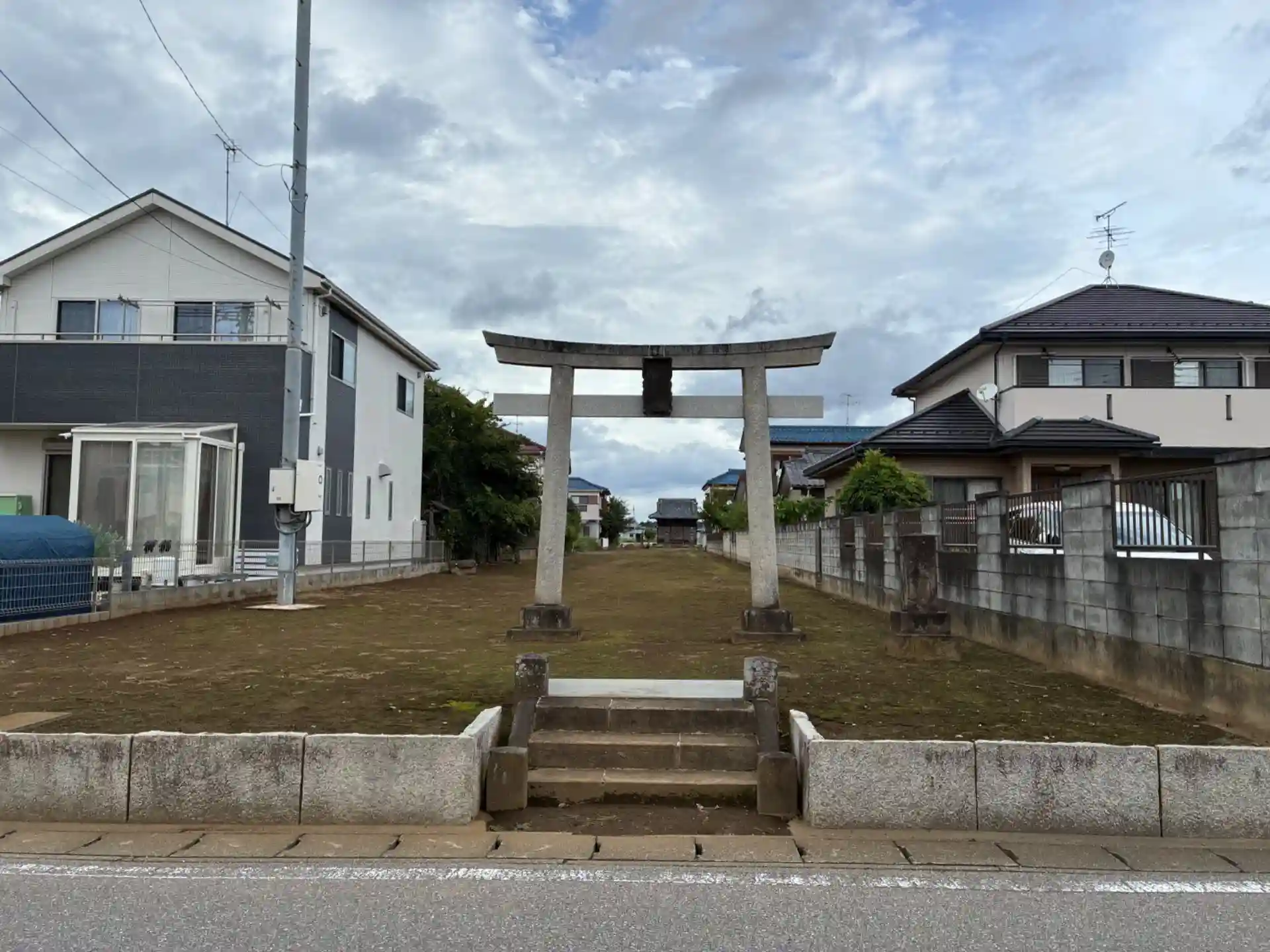 木どころか草すら生えていない参道が異様でした。おそらく後からできた住宅を考慮してのものと思われます。神社裏に雑木林があったようですが、ここも造成するのか砂利敷きになっていました。