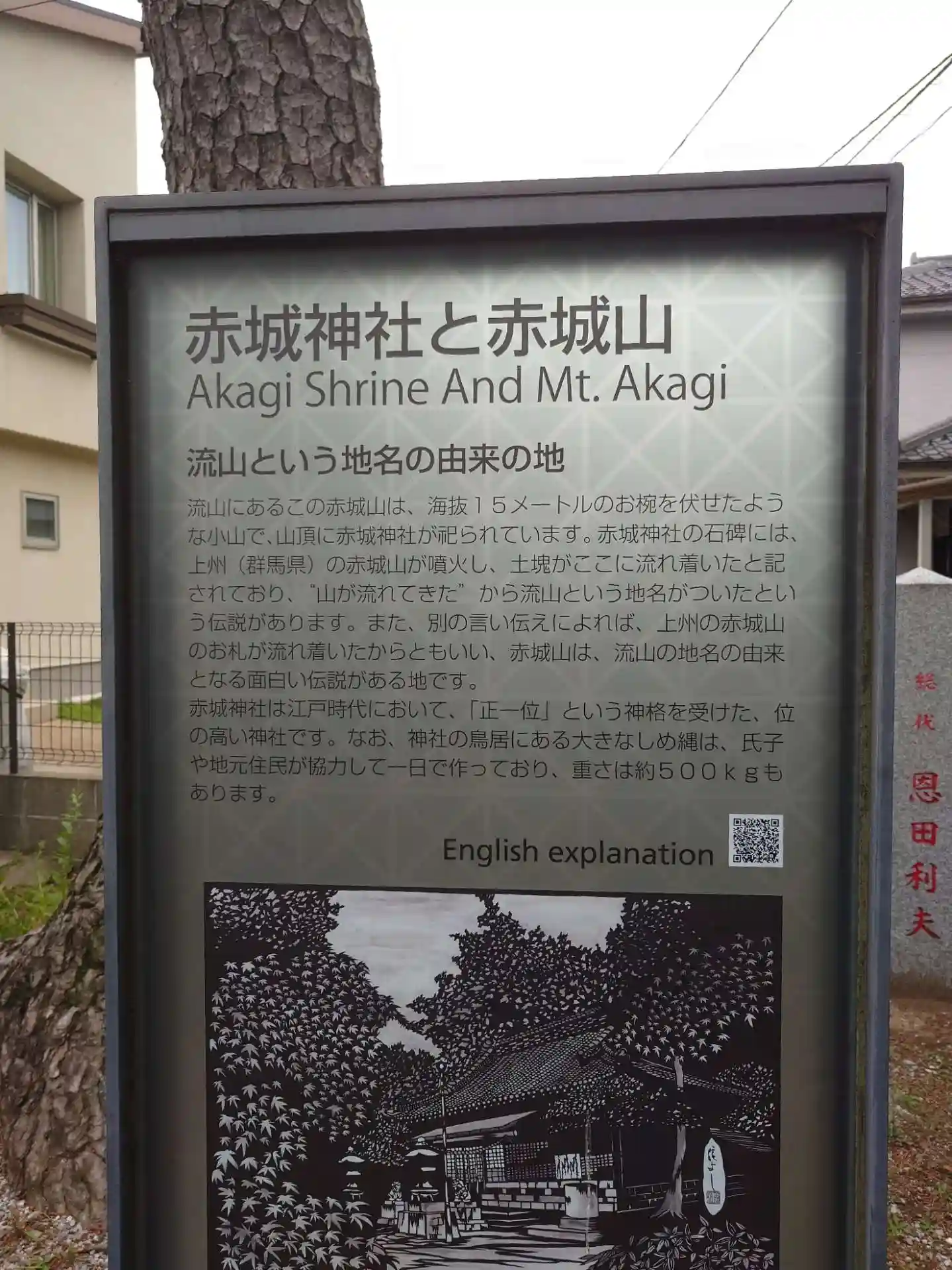 流山の地名の由来にゆかりの神社です。上州の赤城山が噴火し、土塊がここに流れ着き、“山が流れてきた”…