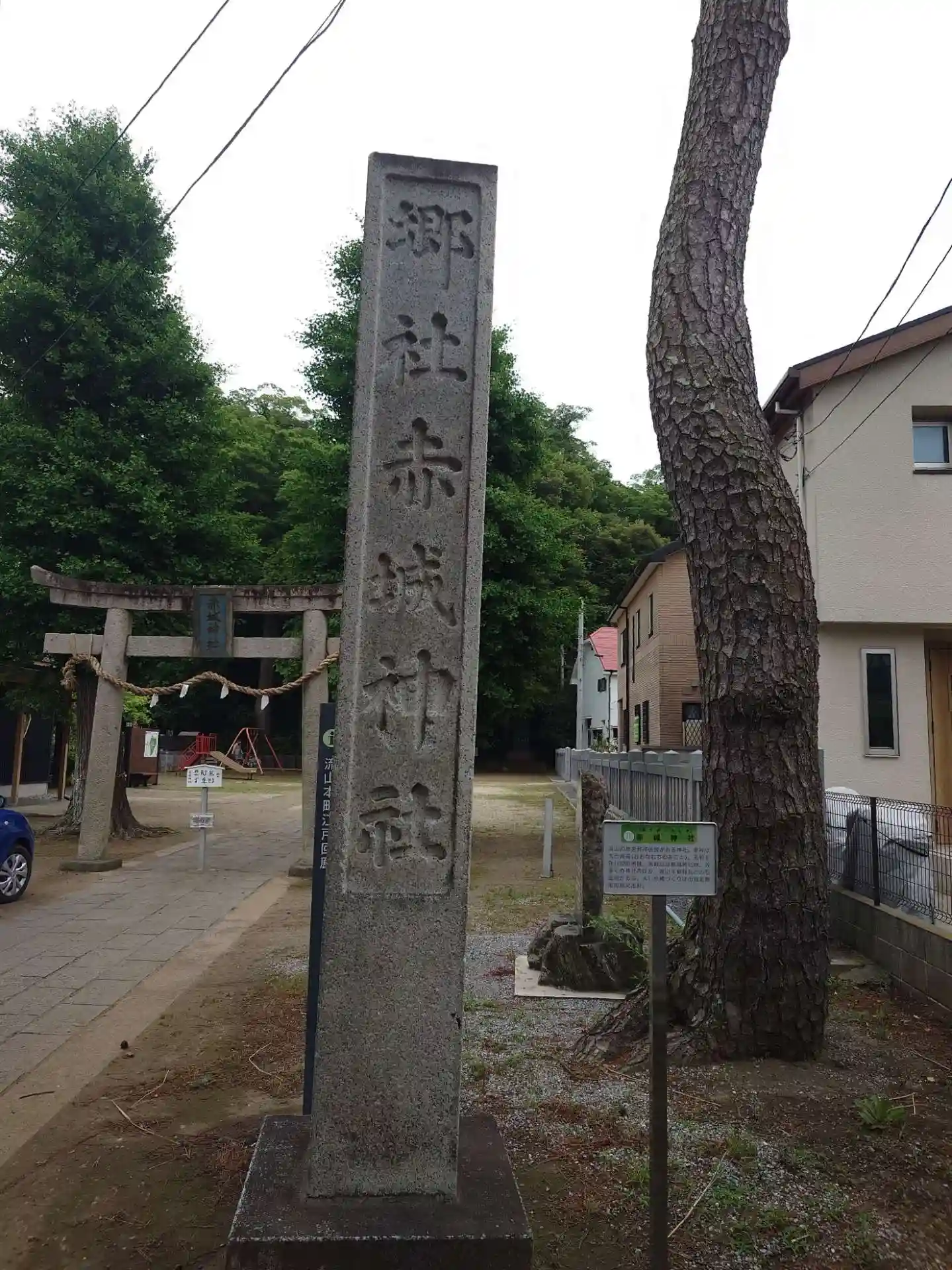 流山電鉄平和台駅から徒歩10分余り。緑豊かな赤城山公園の中心に鎮座する。