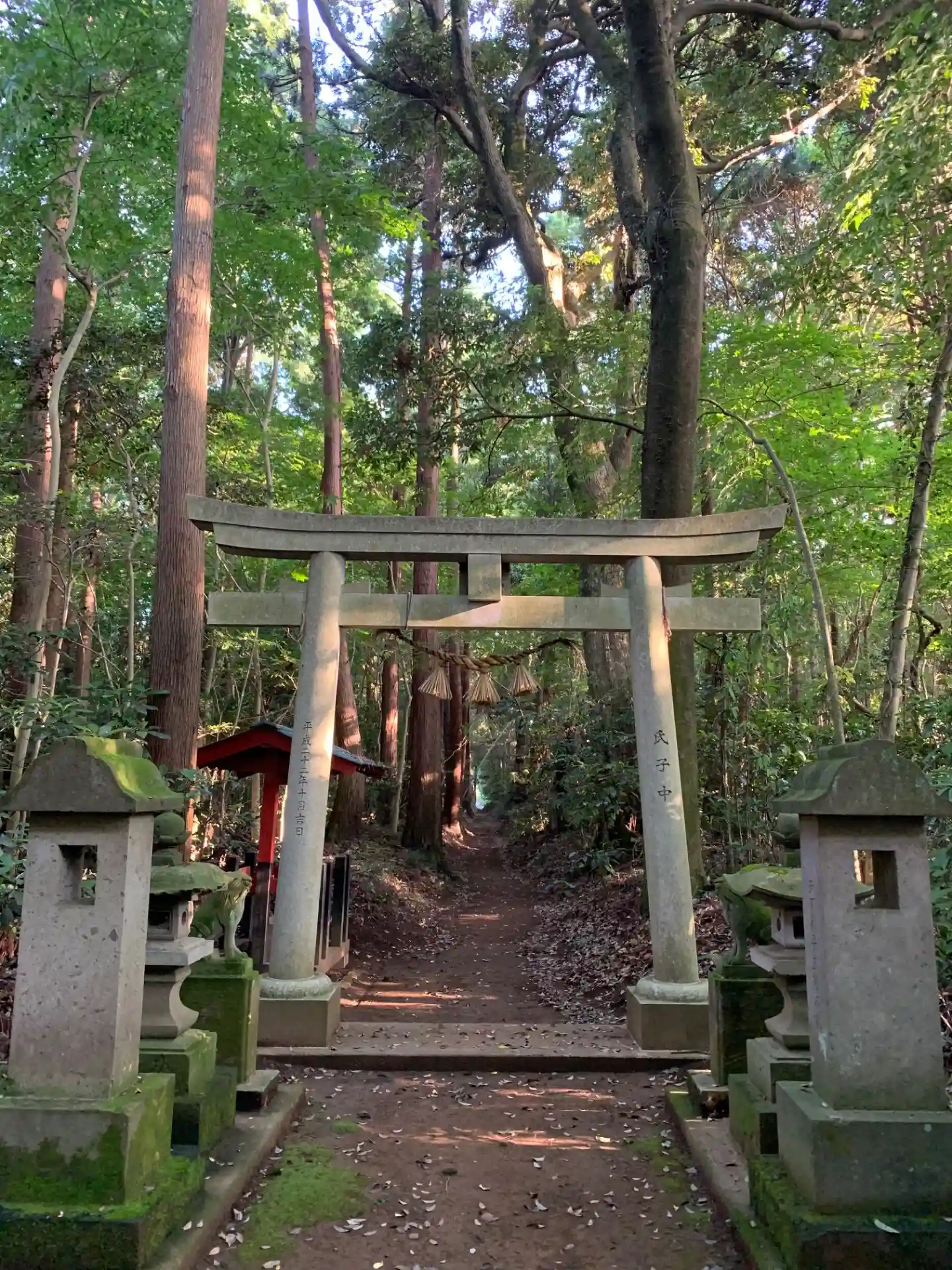 台地の方からまっすぐ参道がのびています。近くの鳥見神社で見たような狛犬と本殿彫刻がこちらでも見られ…