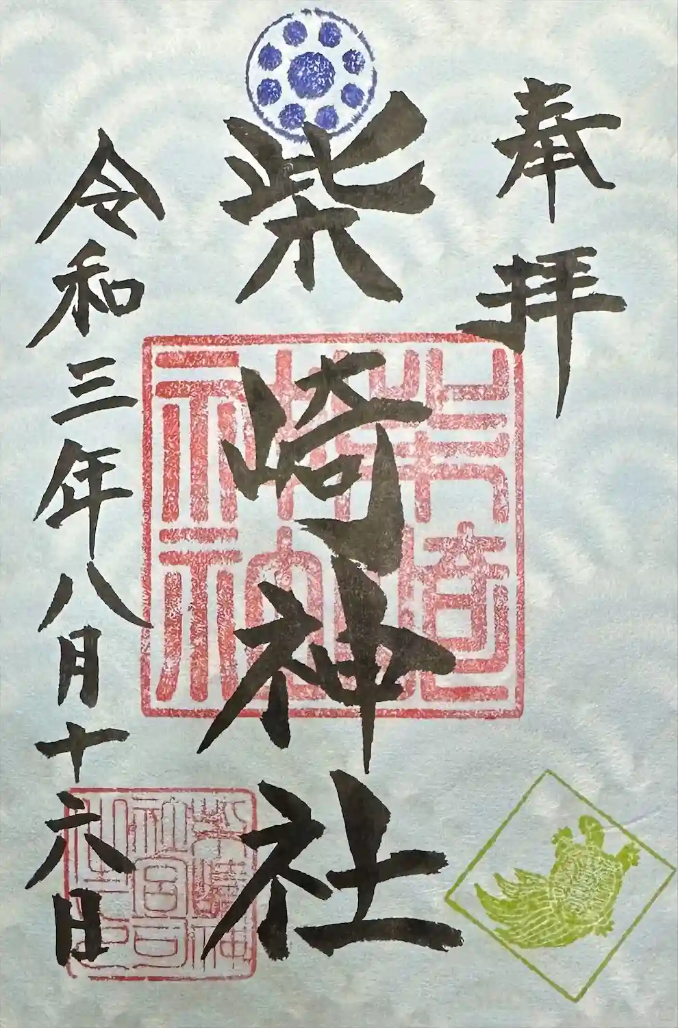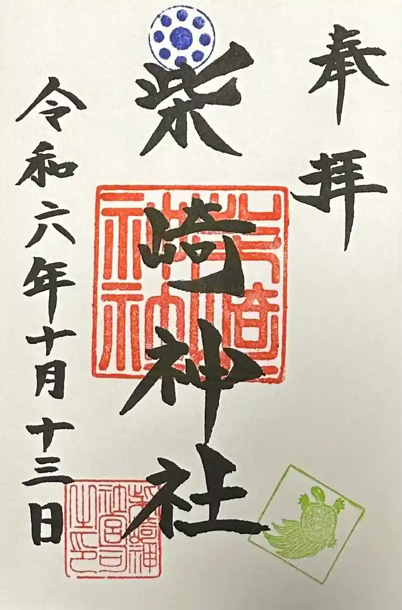 亀のスタンプを押した直書きの御朱印をいただきました。