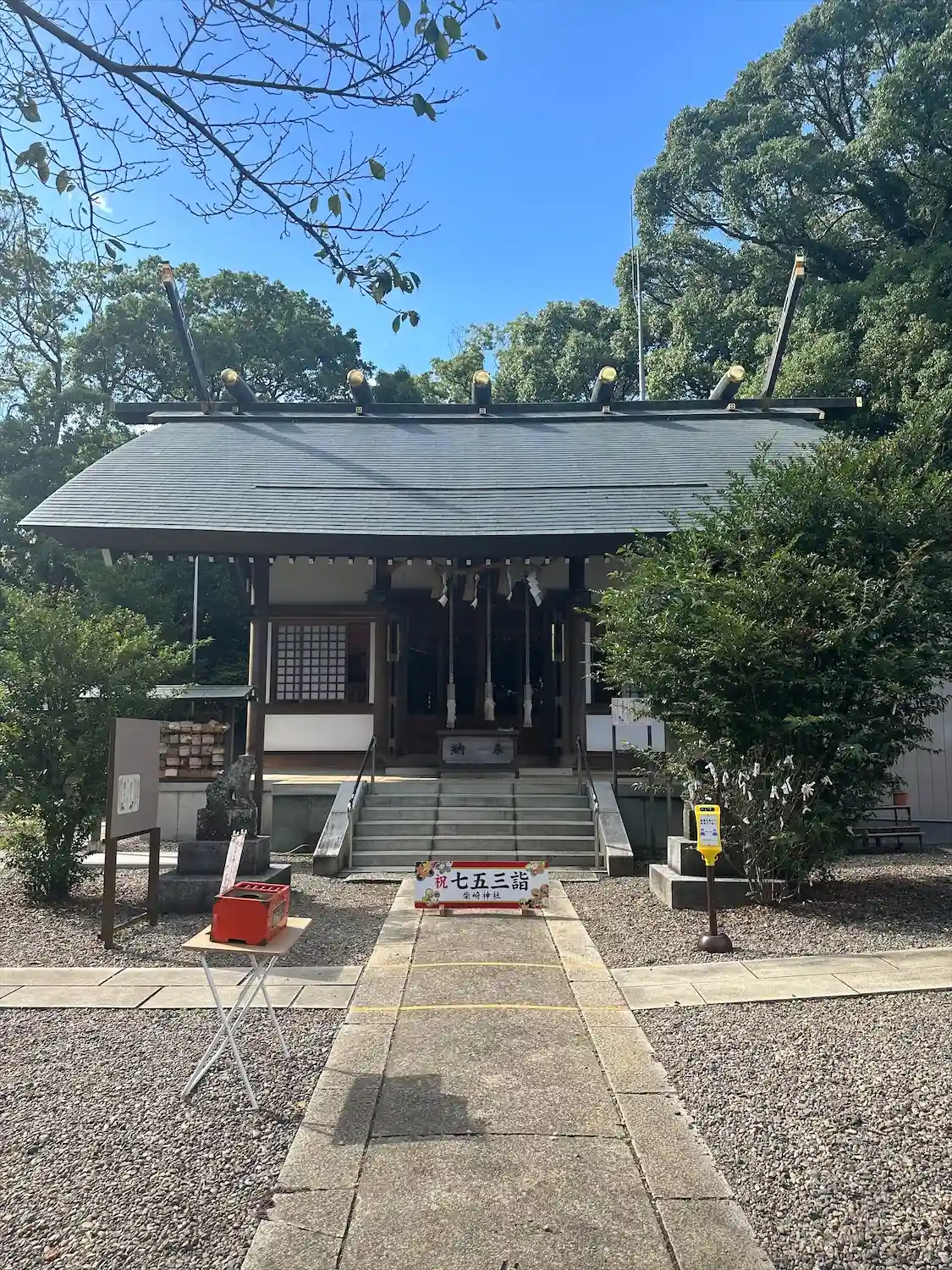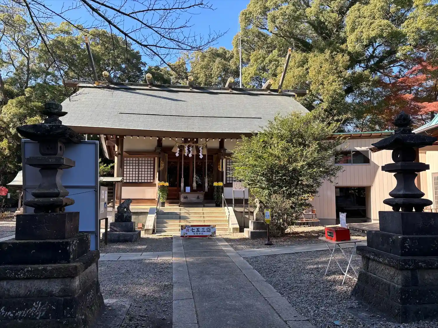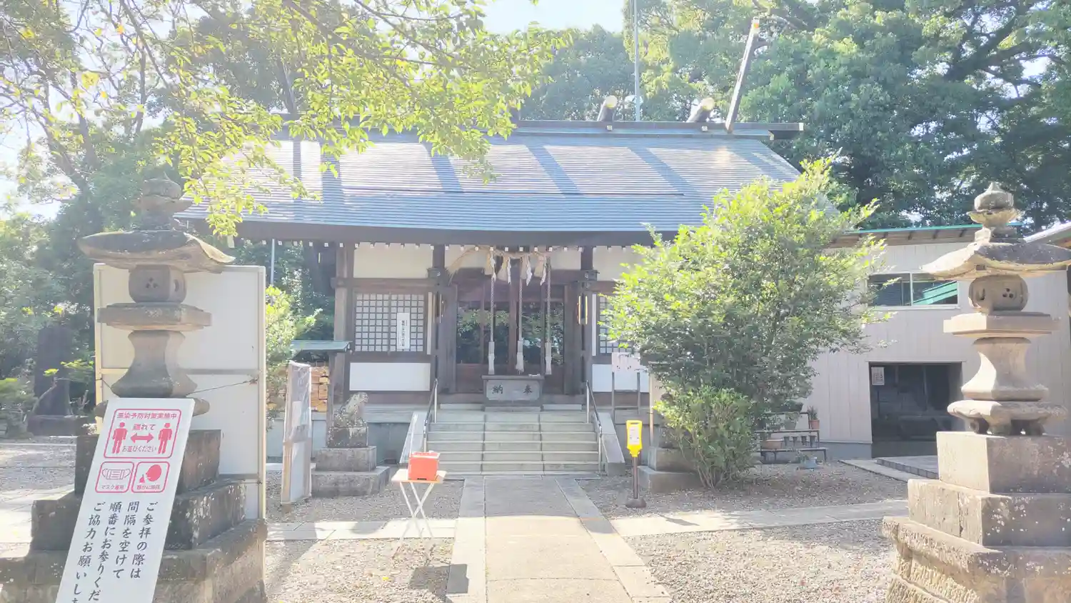 この辺で一番大きな神社。二階建ての参集殿を備えています。