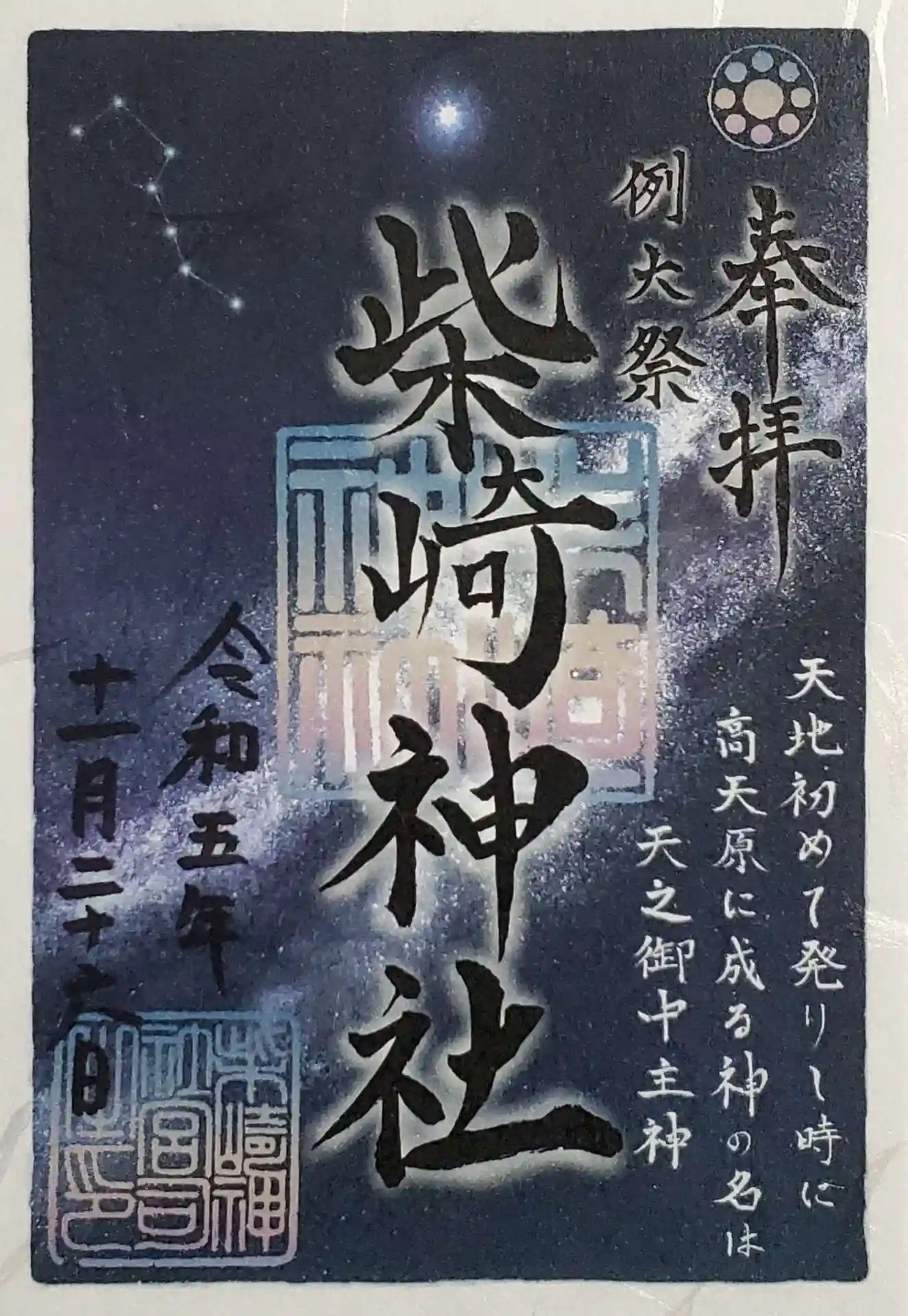 星空と鳥居の描かれた御朱印帳に一目惚れして御朱印と一…