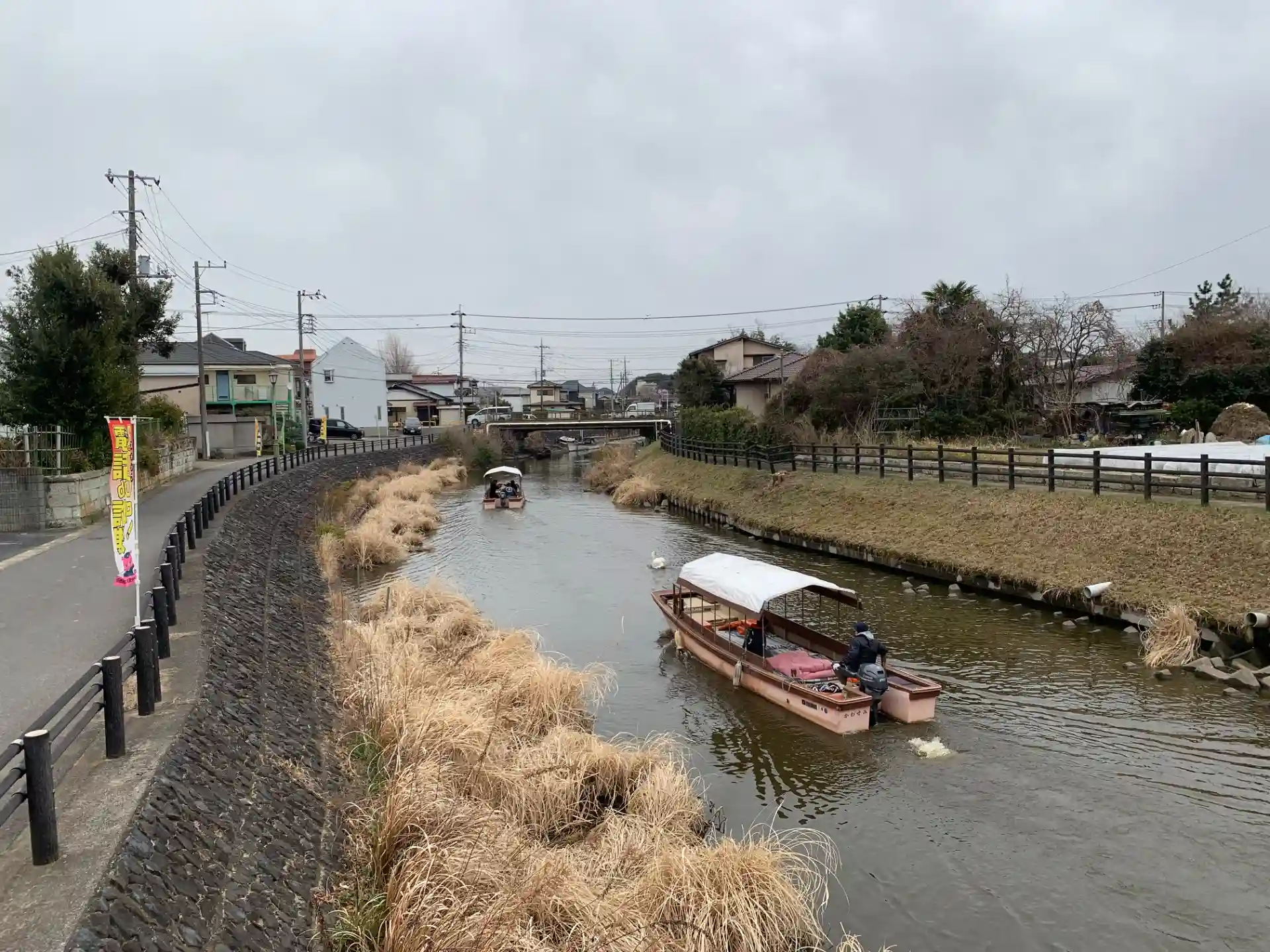 川沿いにある神社。早咲きの桜っぽいのと神橋があり、川はクルージングする人や白鳥が見られます。地元の方と宮司さんが拝殿に集まっていました。