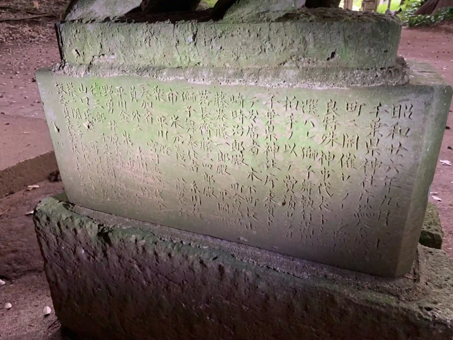 獅子舞が伝わる神社。戦後、千葉県神社庁の総会で狛犬を披露して表彰されたことが狛犬の台座に刻まれています。これを記念して狛犬が作られたものと思われます。