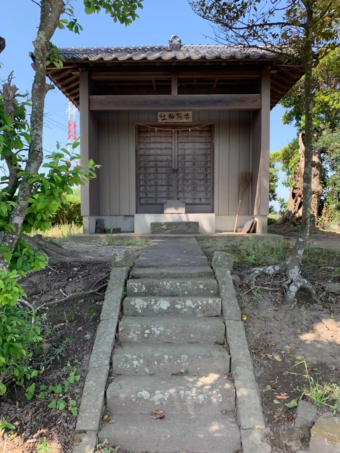 道路脇にある神社。庚申塔などが並んでいます。