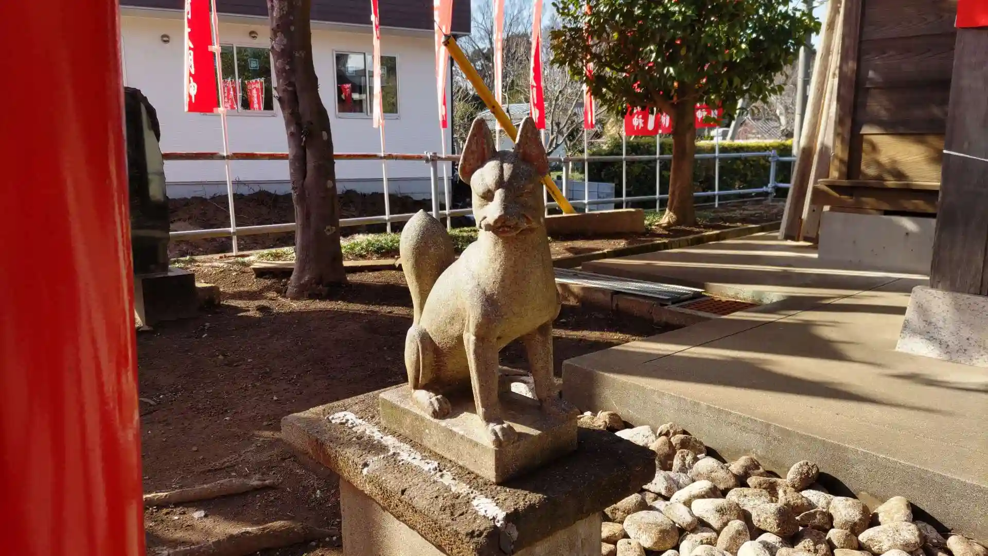 初午祭の後で手水舎に令和6年奉納の赤い手ぬぐいがあり、幟旗も新しく林立して奉納されていました。