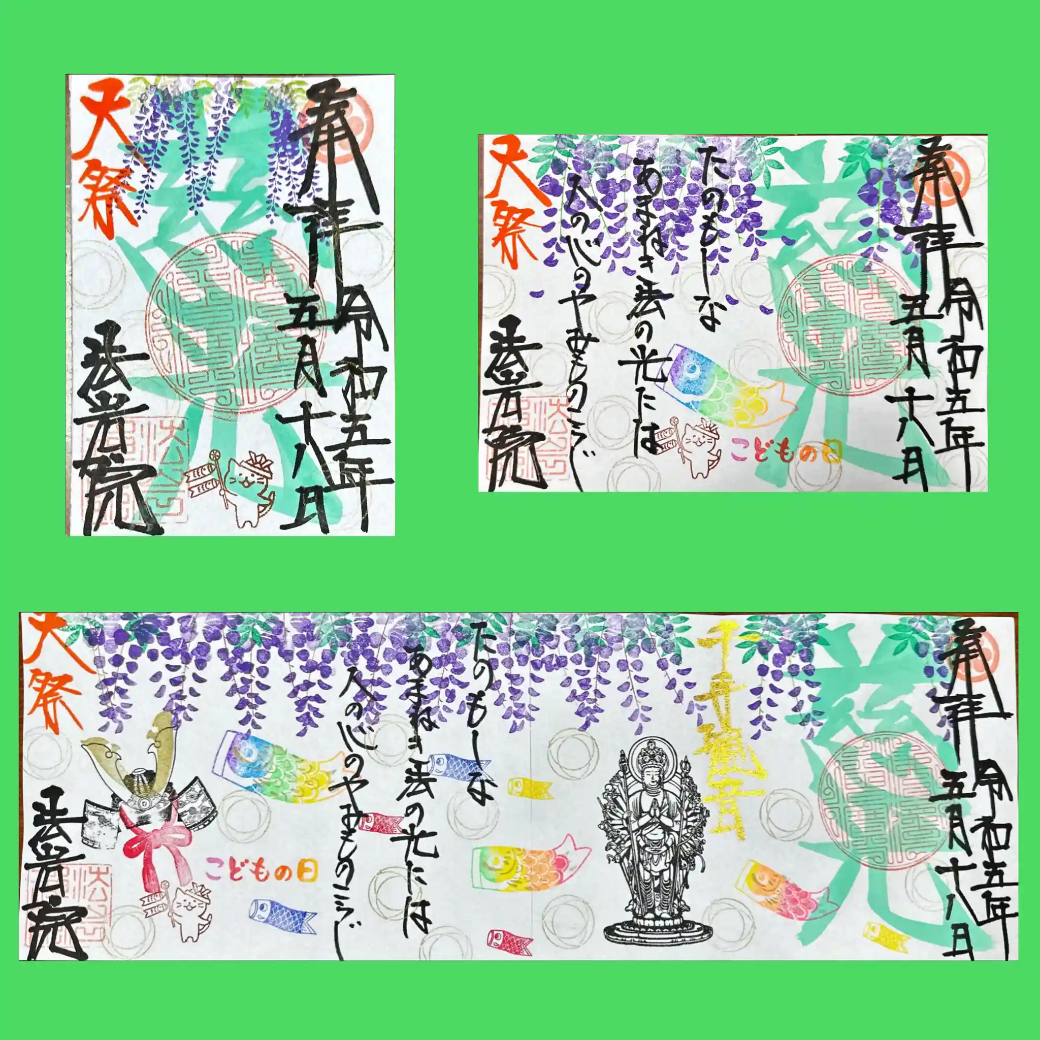 5月限定御朱印①観音大祭 慈光②道了尊大祭③端午の節句のお知らせ