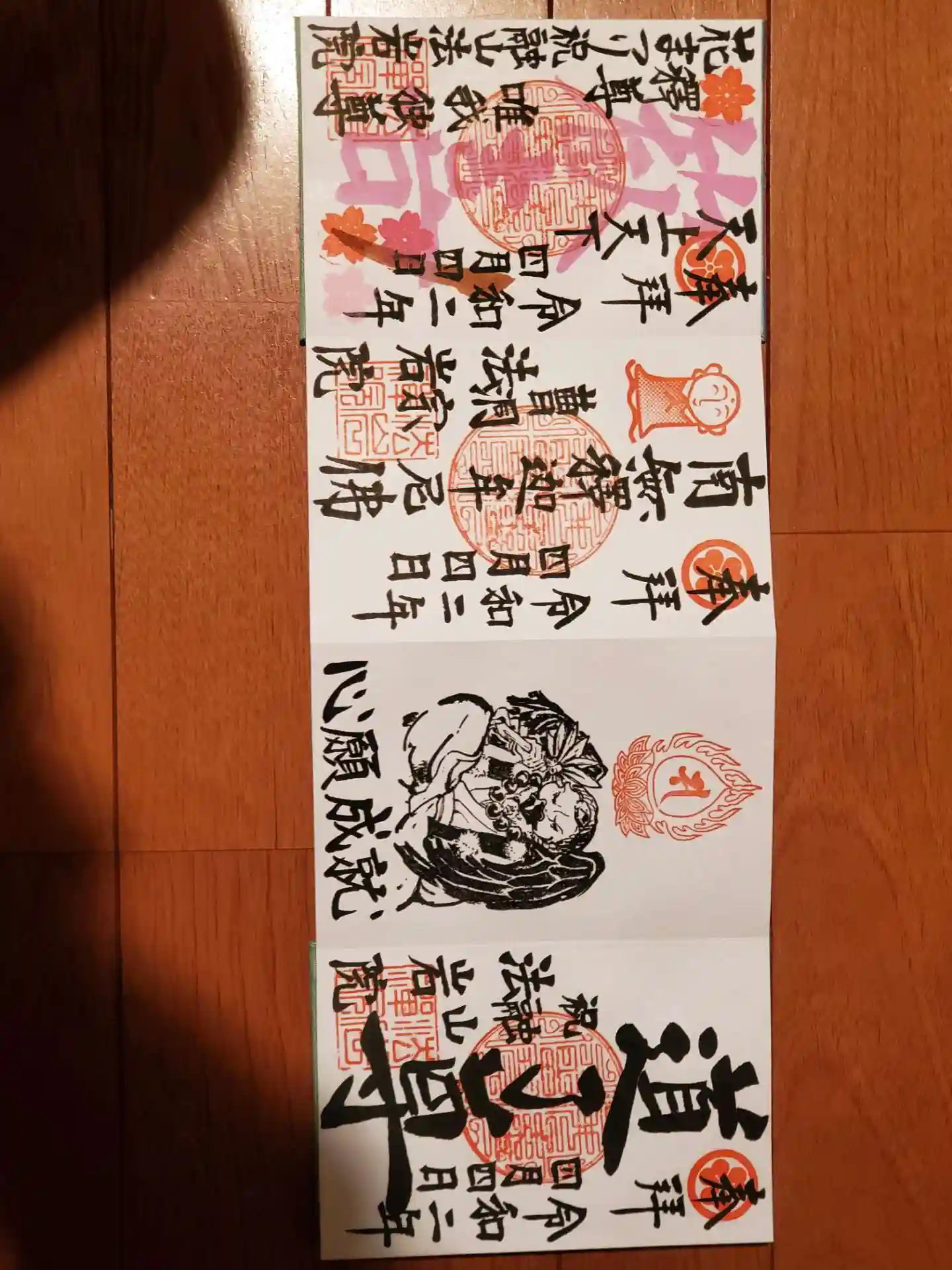 着いた時には法要の最中のようでしたがお参りして社務所へ、奥様が対応して頂き、法要が終われば直書きして頂けるとのこと。御朱印帳を預け、連絡を頂いて取りに伺いました。本堂のご本尊さまをお参り出来るとのこと。近くでお参りし、ご丁寧にご説明頂きました。境内は枝垂桜がキレイでした。素晴らしいお寺で必ずまた来ます。ご住職も御朱印集め始めたそうで、今後の法岩院さんの御朱印にも期待しております❗