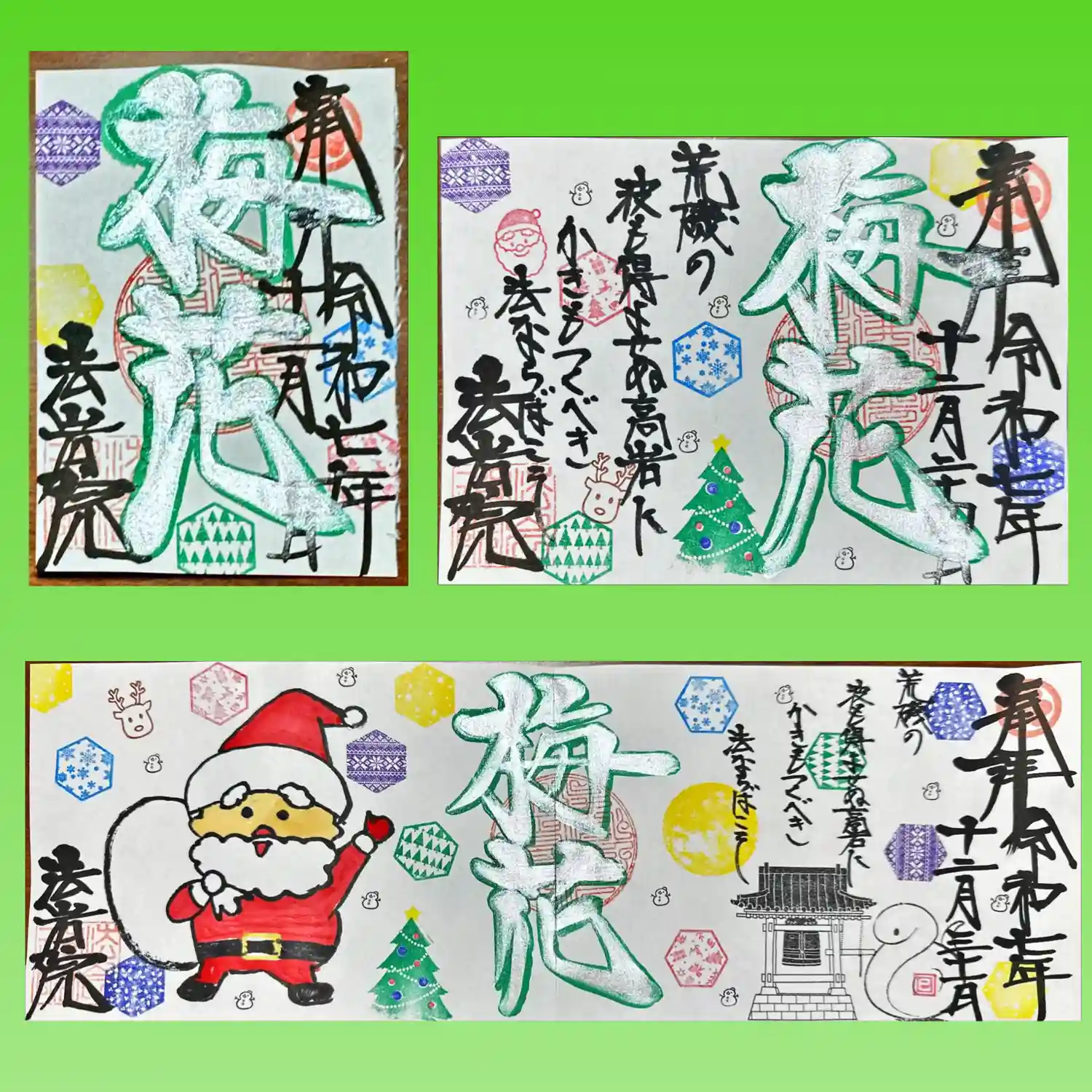 2、書置き郵送・・・奉書に書いて、お送りいたします。送料を別途で頂いております。 ・御朱印の種類例