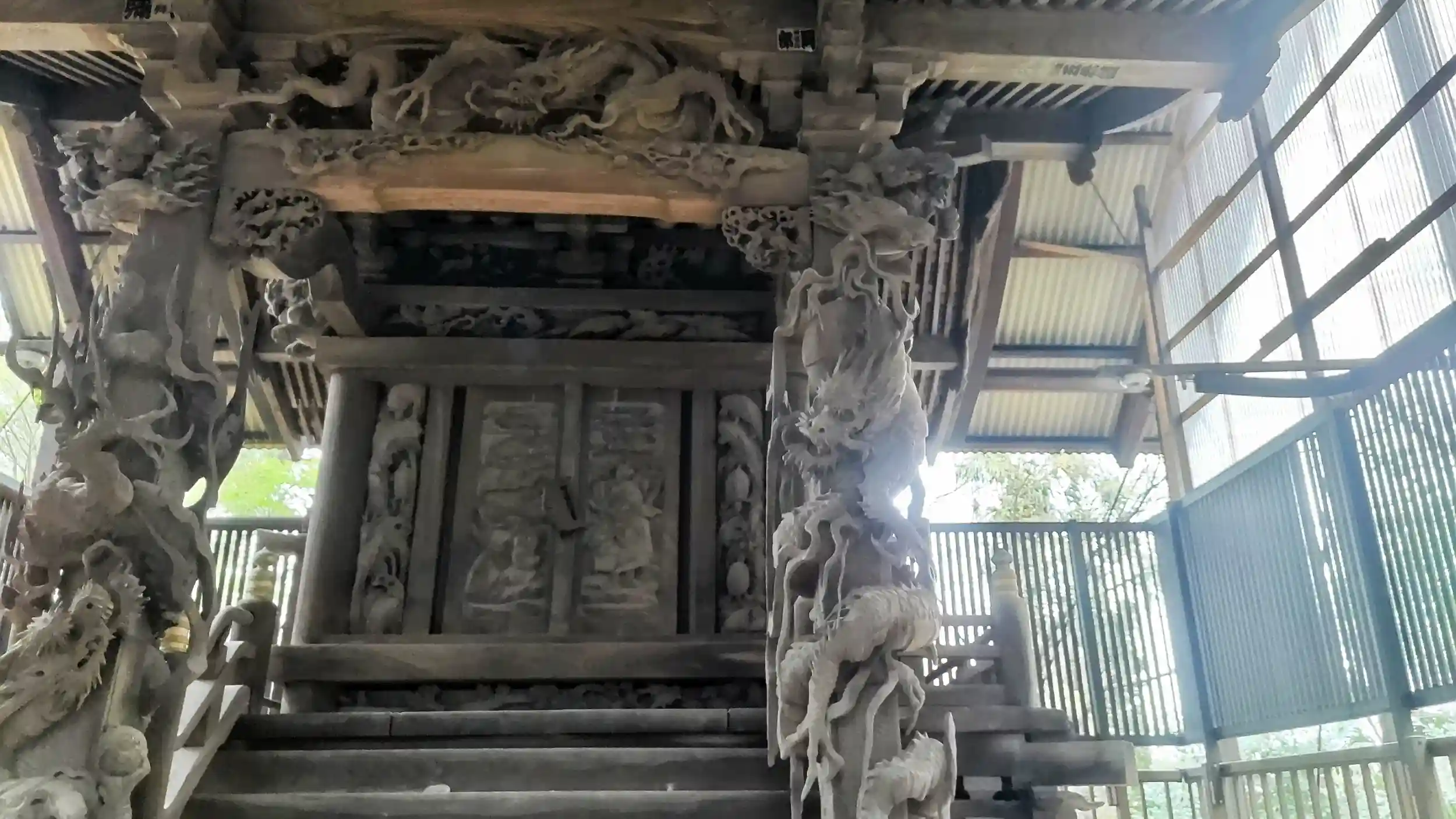 拝殿が独特の形(お寺でたまにある、階段をあがって建物の中間くらいまで入れる構造)なのと、なんといっても本殿の彫刻が素晴らしかったです。ぐるりと一周して写真を撮ってしまいました。