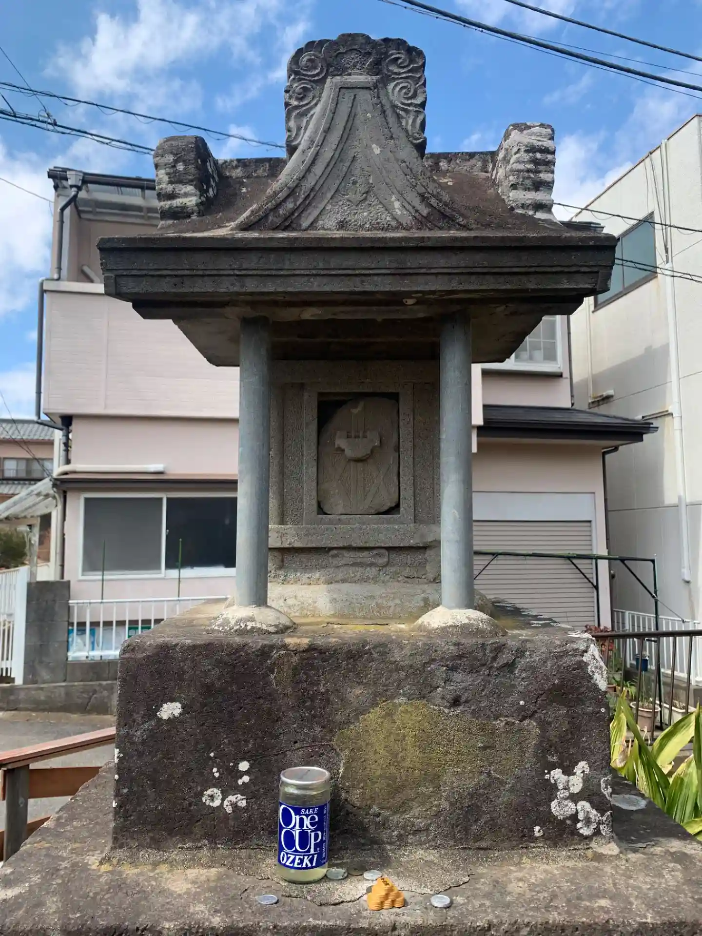 住宅地にある祠。旧布佐町の道標がある路地にあります。