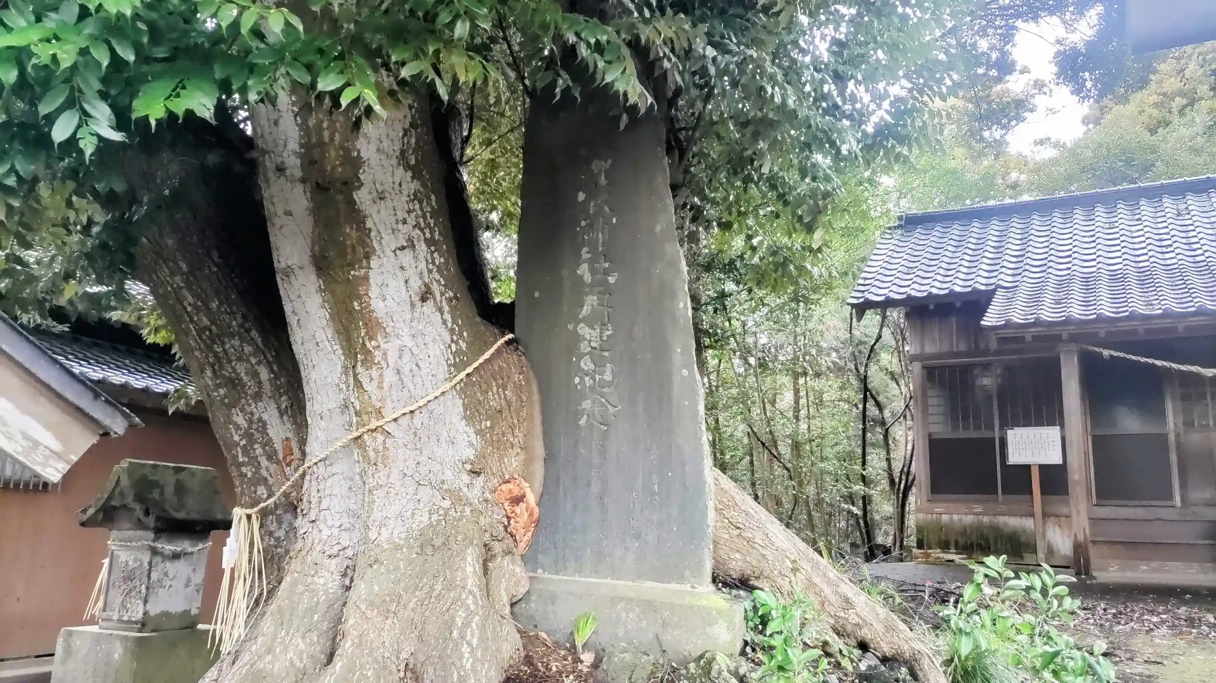 石碑に木が喰い込んでいました