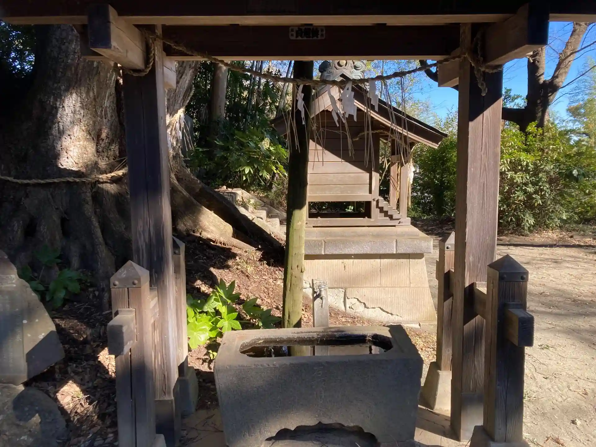この日午前は古いお札を、午後には正月飾りを収めに行きました。車で国道356号を成田・銚子方面に行き、右手に見えてくる「竹内神社」の表示を右折。小学校の校庭をぐるりと周回すると神社の裏手の方に出て来ます。この外周路は細くて見通しも良くない為、平日は車での来訪は避けた方が良さそうです。