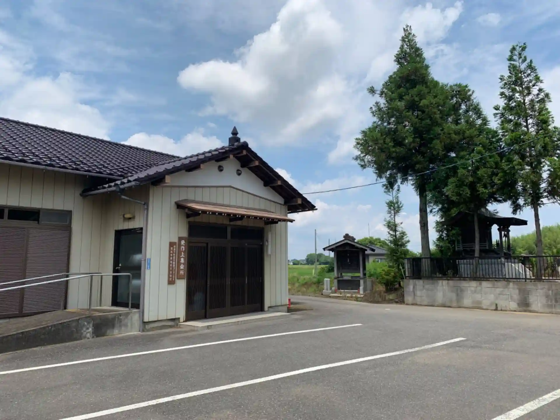 最勝寺だった集会所。印西七福神の石像など寺院の名残がありました。