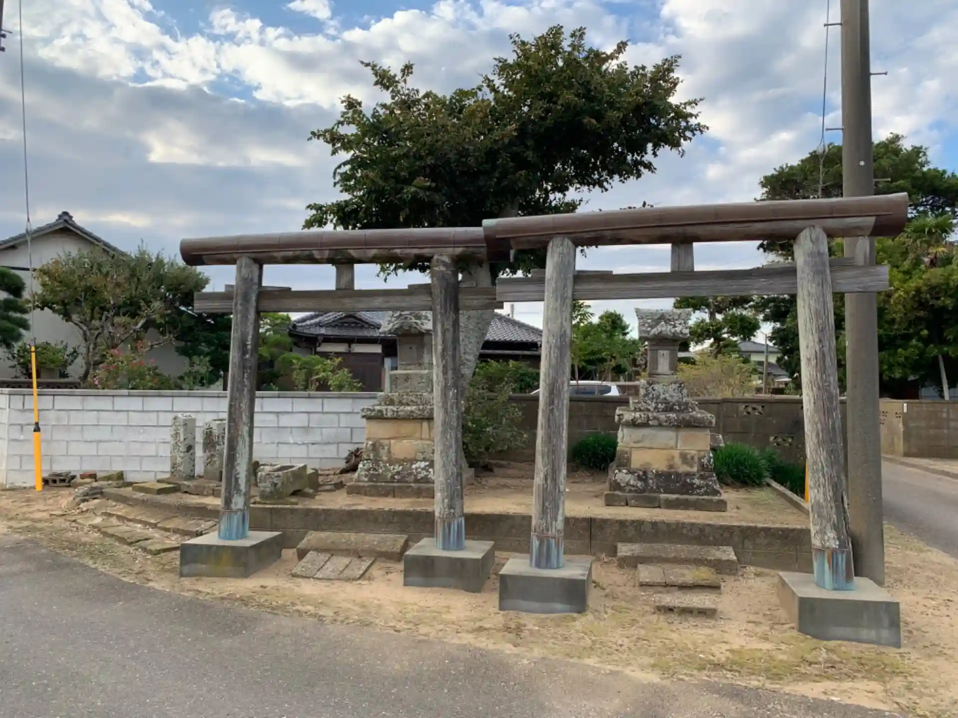 辻に祠が並んでいます。片方が三峯でもう片方は牛頭天王。